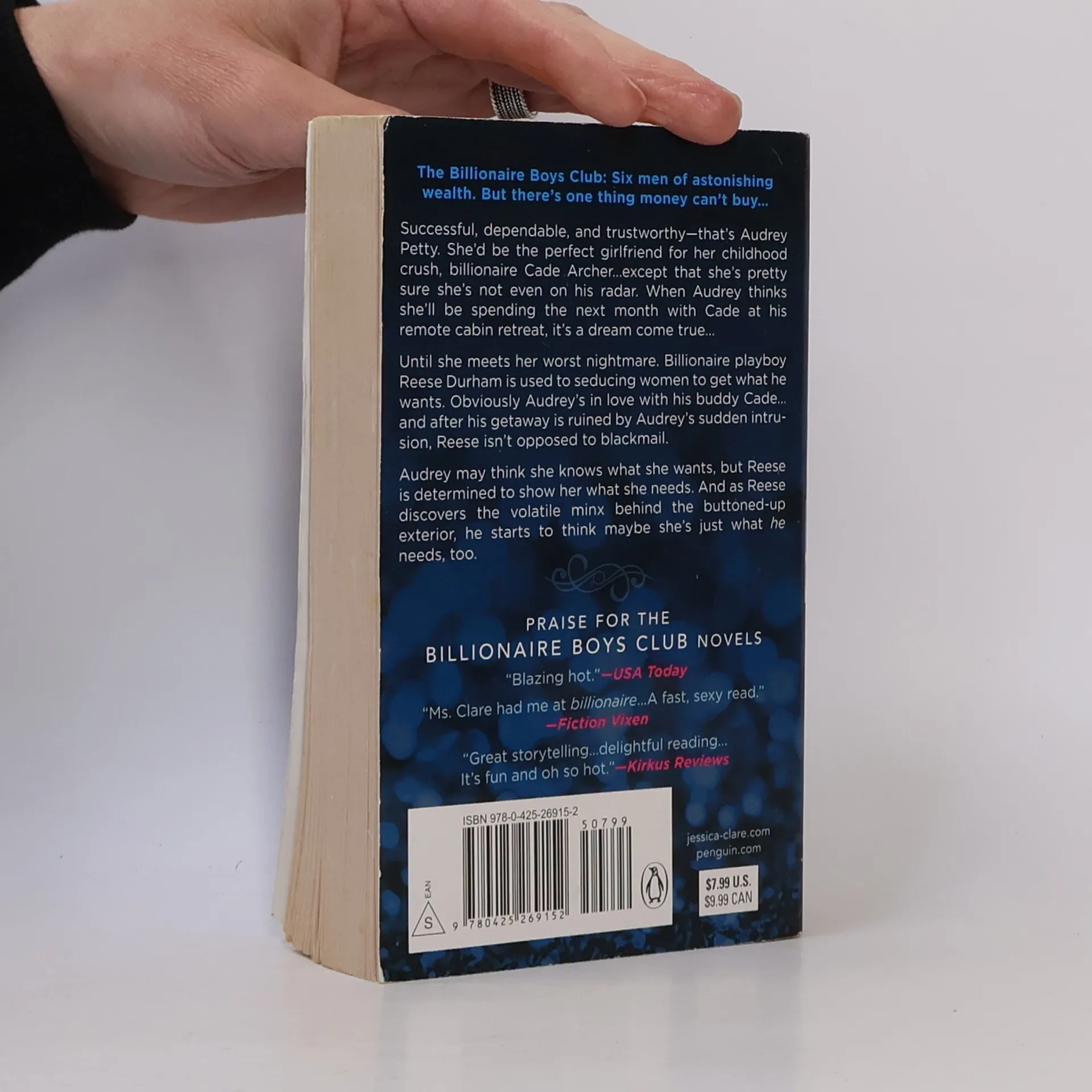 The Billionaire Boys Club: Six men of astonishing wealth. But there’s one thing money can’t buy… Successful, dependable, and trustworthy—that’s Audrey Petty. She’d be the perfect girlfriend for her childhood crush, billionaire Cade Archer…except that she’s pretty sure she’s not even on his radar. When Audrey thinks she’ll be spending the next month with Cade at his remote cabin retreat, it’s a dream come true… Until she meets her worst nightmare. Billionaire playboy Reese Durham is used to seducing women to get what he wants. Obviously Audrey’s in love with his buddy, Cade…and after his getaway is ruined by Audrey’s sudden intrusion, Reese isn’t opposed to blackmail. Audrey may think she knows what she wants, but Reese is determined to show her what she needs. And as Reese discovers the volatile minx behind the buttoned-up exterior, he starts to think maybe she’s just what he needs, too.