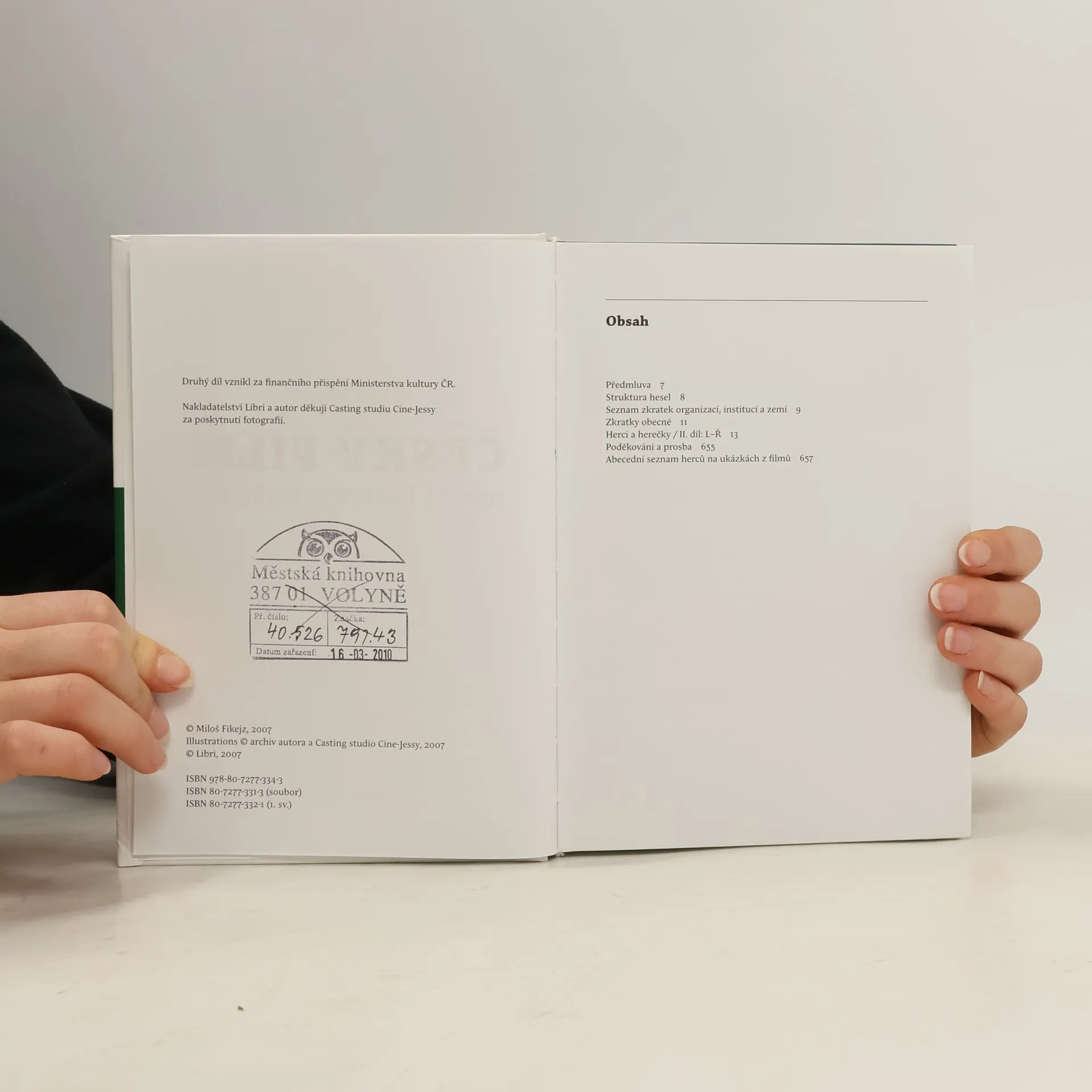 Druhý svazek obsahuje na 1 400 biografických portrétů. Najdeme tu nejen přední herečky a herce v českém (československém) filmu, a to včetně zahraničních, zejména slovenských (sestry Emílie a Magda Vašáryovy a mnozí další), ale i stovky těch, kteří hráli vesměs vedlejší role, a nechybí ani tzv. figurkáři, z nichž mnozí přitom mají ve filmografii stovku (ale i 300!) filmů. Text zahrnuje nejen filmografii, ale i základní životní data a je doprovázen množstvím portrétů. ISBN pro soubor: 80-7277-331-3