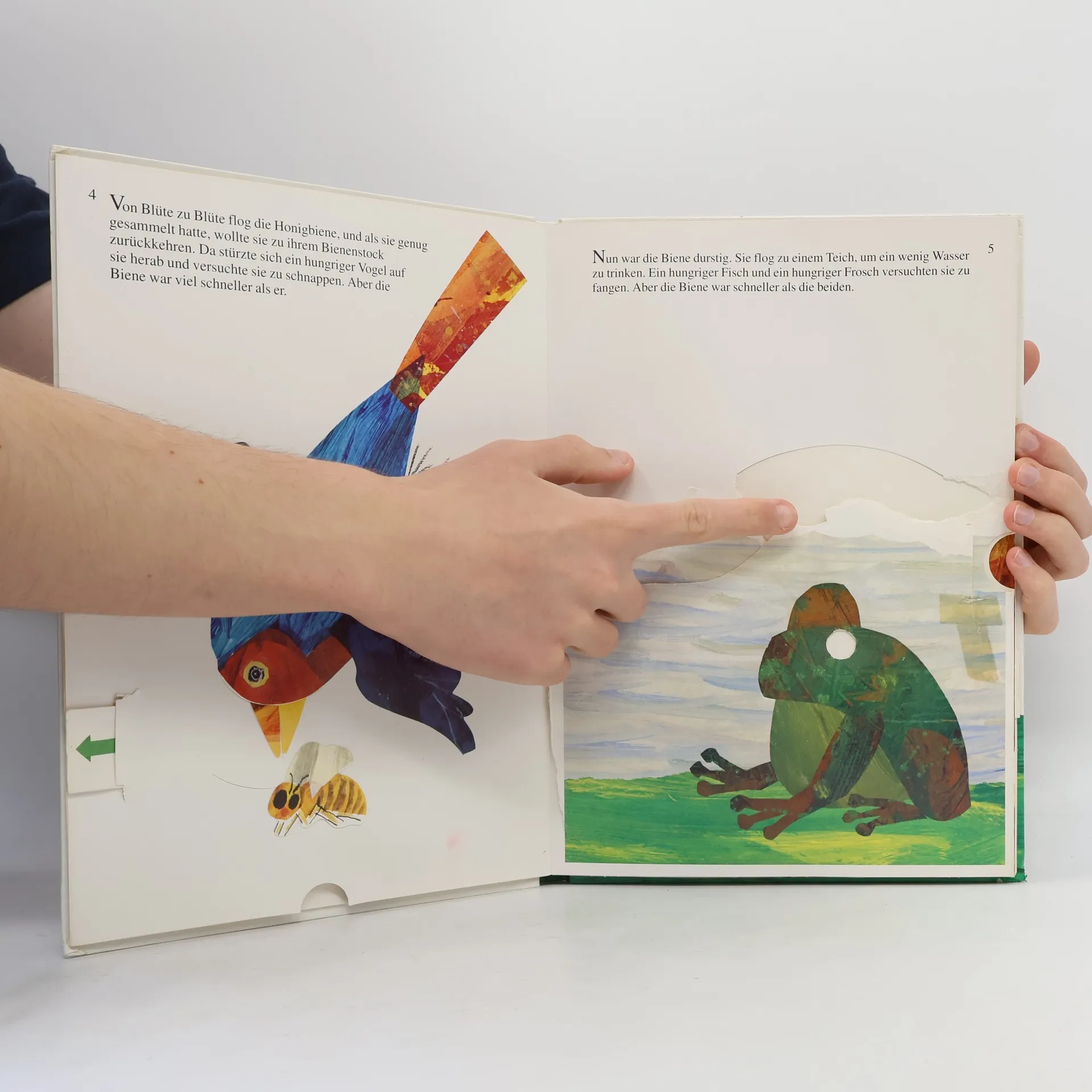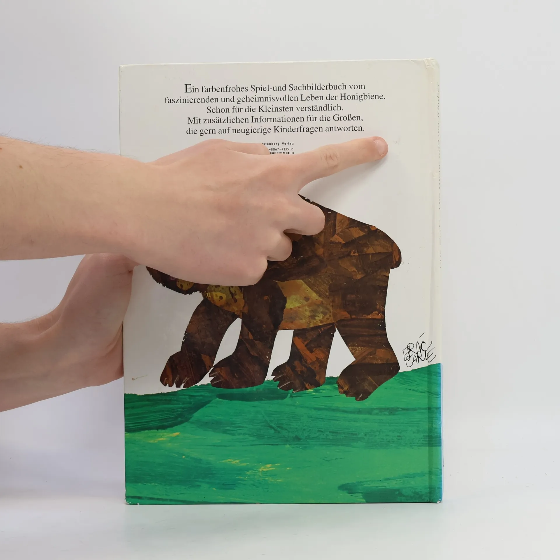 Dass Honig von Bienen hergestellt wird, weiß fast jeder, aber wie entsteht er genau? Was fangen die Bienen selbst mit der süßen Leckerei an? Dem Lebenslauf der Biene folgend, erklärt Eric Carle Schritt für Schritt, was in einem Bienenstock geschieht, wie und wo die Bienen Nektar sammeln, welchen Gefahren sie dabei ausgesetzt sind, welche Aufgabe die Bienenkönigin hat und was Bienen tun, wenn sich andere für ihren Honig interessieren - in diesem Fall ein hungriger Bär. Das Besondere an diesem Buch: alle Erlebnisse der Biene lassen sich durch Ausklapptafeln oder Zuglaschen in Bewegungen umsetzen und können so von den kleinen Lesern und Betrachtern 'spielend' nachvollzogen werden. Der Anhang bietet Erklärungshilfen für alle Erwachsenen, damit sie neugierigen Kindern auf Fragen sachkundig antworten können.