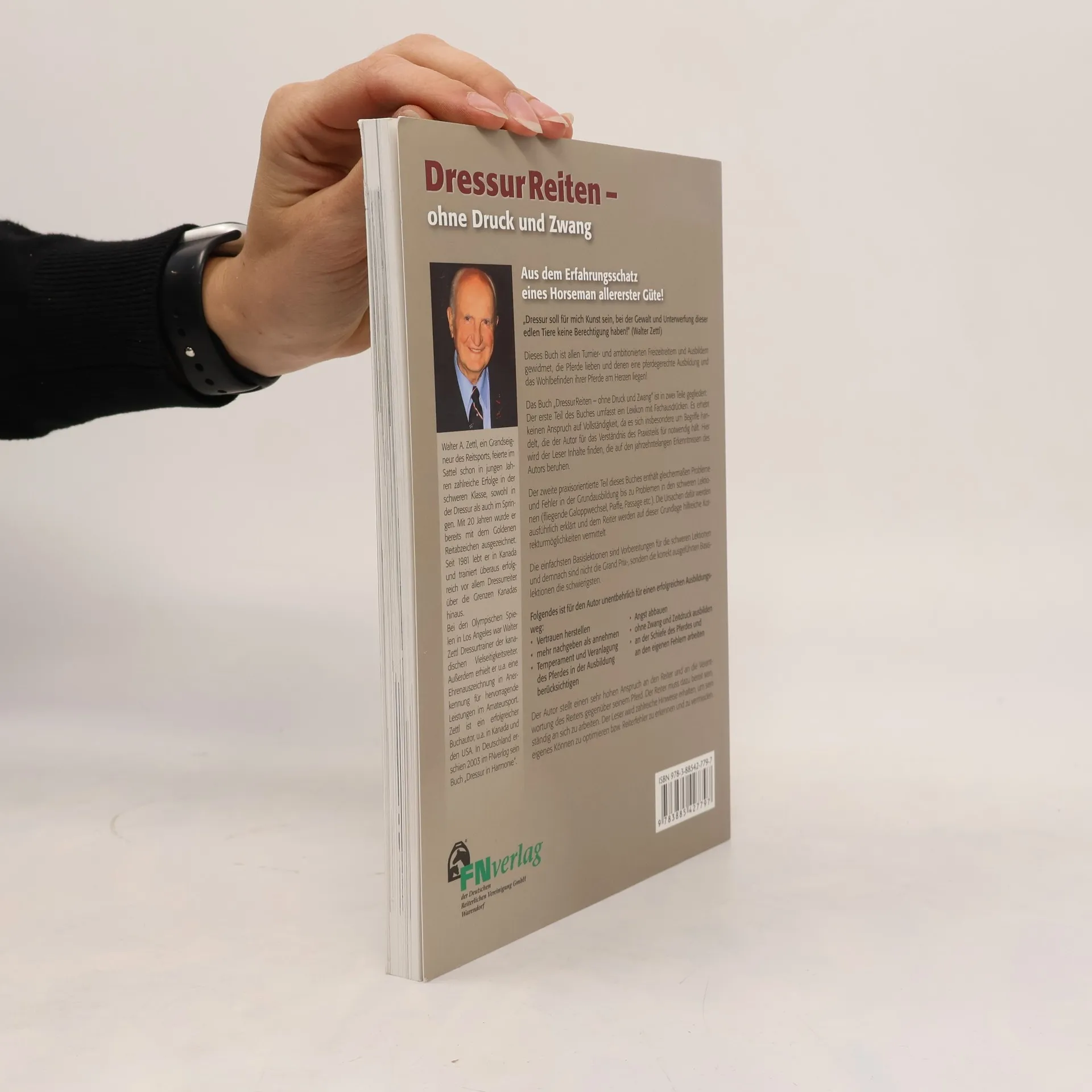 „Dressur soll für mich Kunst sein, bei der Gewalt und Unterwerfung dieser edlen Tiere keine Berechtigung haben!“ WALTER A. ZETTL Dieses Buch richtet sich an Turnier- und ambitionierte Freizeitreiter sowie Ausbilder, die Pferde lieben und deren Wohlbefinden am Herzen liegt. Es ist in zwei Teile gegliedert: Der erste Teil bietet eine Sammlung von Fachausdrücken, die für das Verständnis des Praxisteils notwendig sind, basierend auf den jahrzehntelangen Erkenntnissen des Autors. Der zweite Teil ist praxisorientiert und behandelt Probleme und Fehler in der Grundausbildung bis hin zu komplexen Lektionen wie fliegenden Galoppwechseln, Piaffe und Passage. Die Ursachen dieser Probleme werden ausführlich erklärt, und dem Reiter werden hilfreiche Korrekturmöglichkeiten aufgezeigt. Die Basislektionen sind entscheidend für die Vorbereitung auf die schweren Lektionen, wobei korrekt ausgeführte Basislektionen als die schwierigsten gelten. Der Autor betont die Bedeutung von Vertrauen, der Abbau von Angst, einer Ausbildung ohne Zwang und Zeitdruck sowie die Berücksichtigung des Temperaments und der Veranlagung des Pferdes. Er fordert von den Reitern ein hohes Maß an Verantwortung und die Bereitschaft, kontinuierlich an sich zu arbeiten. Der Leser erhält zahlreiche Hinweise zur Optimierung seines Könnens und zur Vermeidung von Reiterfehlern.