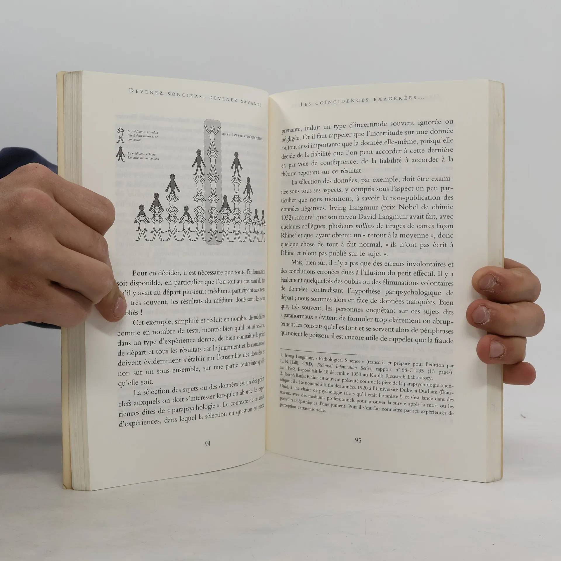 Veut-on savoir comment griller des ampoules électriques à distance ? Veut-on comprendre pourquoi on peut le faire ? Veut-on savoir comment se transpercer la langue sans éprouver la moindre douleur ni même la moindre gène, sinon celle de ne plus pouvoir fermer la bouche ? Veut-on comprendre pourquoi on peut le faire ? Veut-on savoir comment marcher sur des braises ardentes sans se brûler les pieds, comme si l’on foulait la plus moelleuse des moquettes ? Veut-on comprendre pourquoi on peut le faire ? Veut-on savoir comment localiser des points d’eau avec une baguette de sourcier ? Veut-on comprendre pourquoi on peut le faire ? C’est à ces deux questions, et pour chaque cas, que Georges Charpak et Henri Broch apportent des réponses passionnantes.