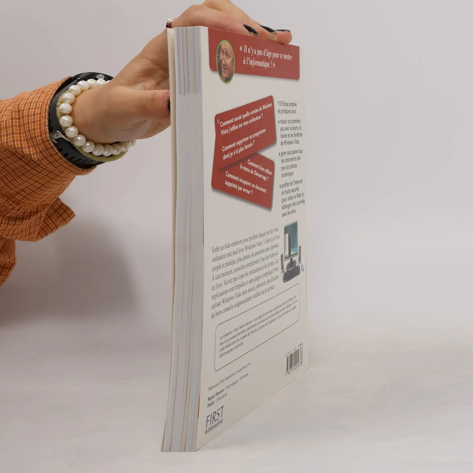 Réalisé en partenariat avec " Famiclic ", pionnier de l'assistance et de la formation informatiques à domicile, cet Aide-mémoire reflète les questions les plus fréquentes des utilisateurs " seniors " convertis à l'ordinateur. Des réponses simples pour se mettre à Windows Vista : Comment savoir si mon ordinateur actuel fonctionnera parfaitement avec Vista ? Pourquoi le menu Démarrer est-il en deux parties ? Comment ajouter un raccourci sur le Bureau ? Comment désinstaller un programme ? Comment accéder au Centre de sécurité de Windows ? À quoi reconnaît-on un site Web sécurisé ?? 100 fiches classées par thème? Centrées sur les vraies difficultés que rencontrent les ménages seniors récemment équipés d'un ordinateur avec Vista? Explications simples, vocabulaire compréhensible.