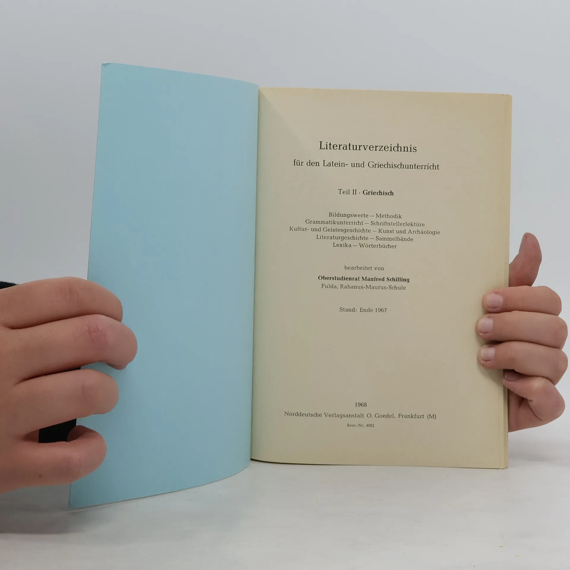 Literaturverzeichnis für den Latein- und Griechischunterricht II, Manfred Schilling