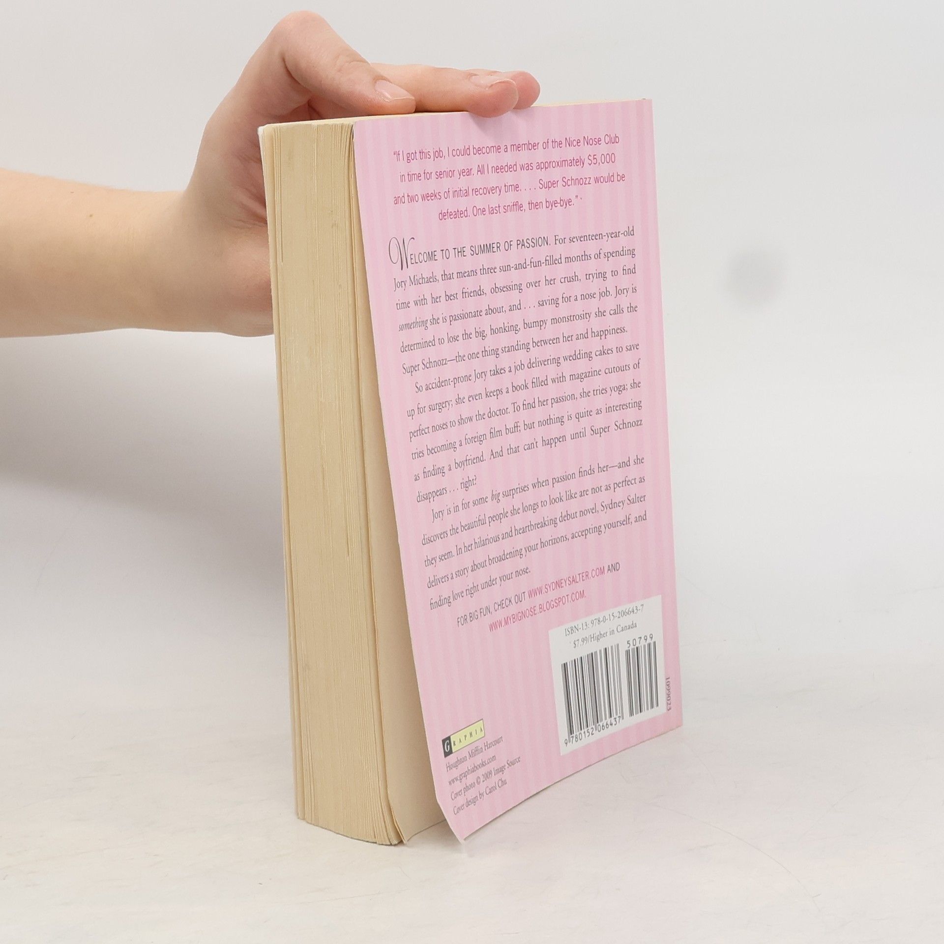 It’s the end of junior year, and summer is about to begin. The Summer of Passion, to be exact, when Jory Michaels plans to explore all the possibilities of the future—and, with any luck, score a boyfriend in the process. But Jory has a problem. A big problem. A curvy, honking, bumpy, problem in the form of her Super Schnozz, the one thing standing between Jory and happiness. And now, with the Summer of Passion stretched before her like an open road, she's determined for Super Schnozz to disappear. Jory takes a job delivering wedding cakes to save up for a nose job at the end of the summer; she even keeps a book filled with magazine cutouts of perfect noses to show the doctor. But nothing is ever easy for accident-prone Jory—and before she knows it, her Summer of Passion falls apart faster than the delivery van she crashes. In this hilarious and heartbreaking novel, Sydney Salter delivers a story about broadening your horizons, accepting yourself, and finding love right under your nose.