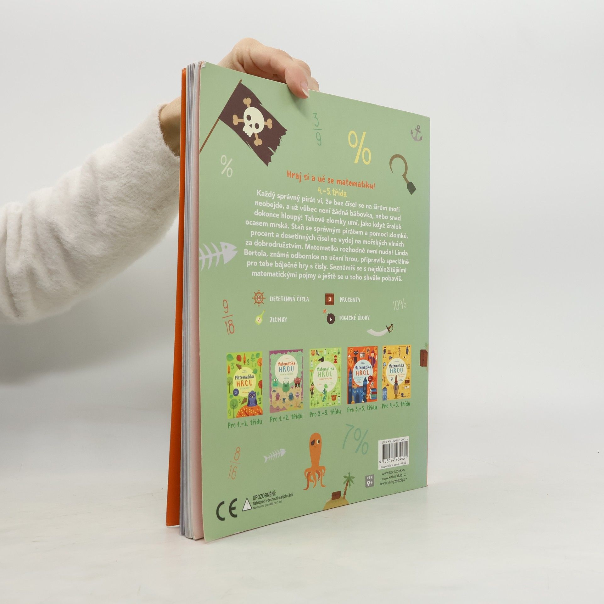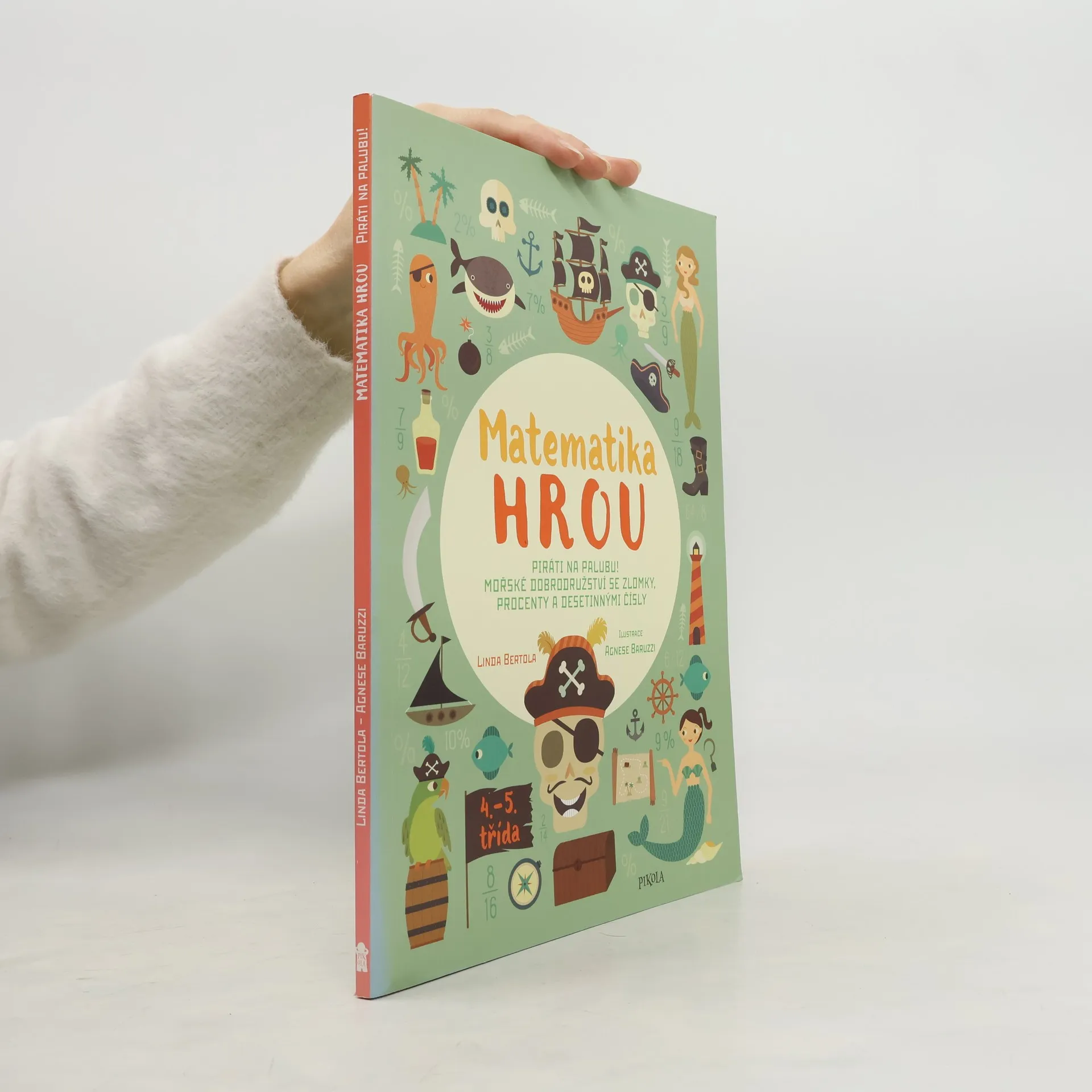 Správný pirát není žádná bábovka a už vůbec nesmí být hloupý! Takové zlomky umí, jako když žralok ocasem mrská. Staň se správným pirátem a pomocí zlomků, procent a desetinných čísel se vydej na mořských vlnách za dobrodružstvím. Pro děti od 9 let.