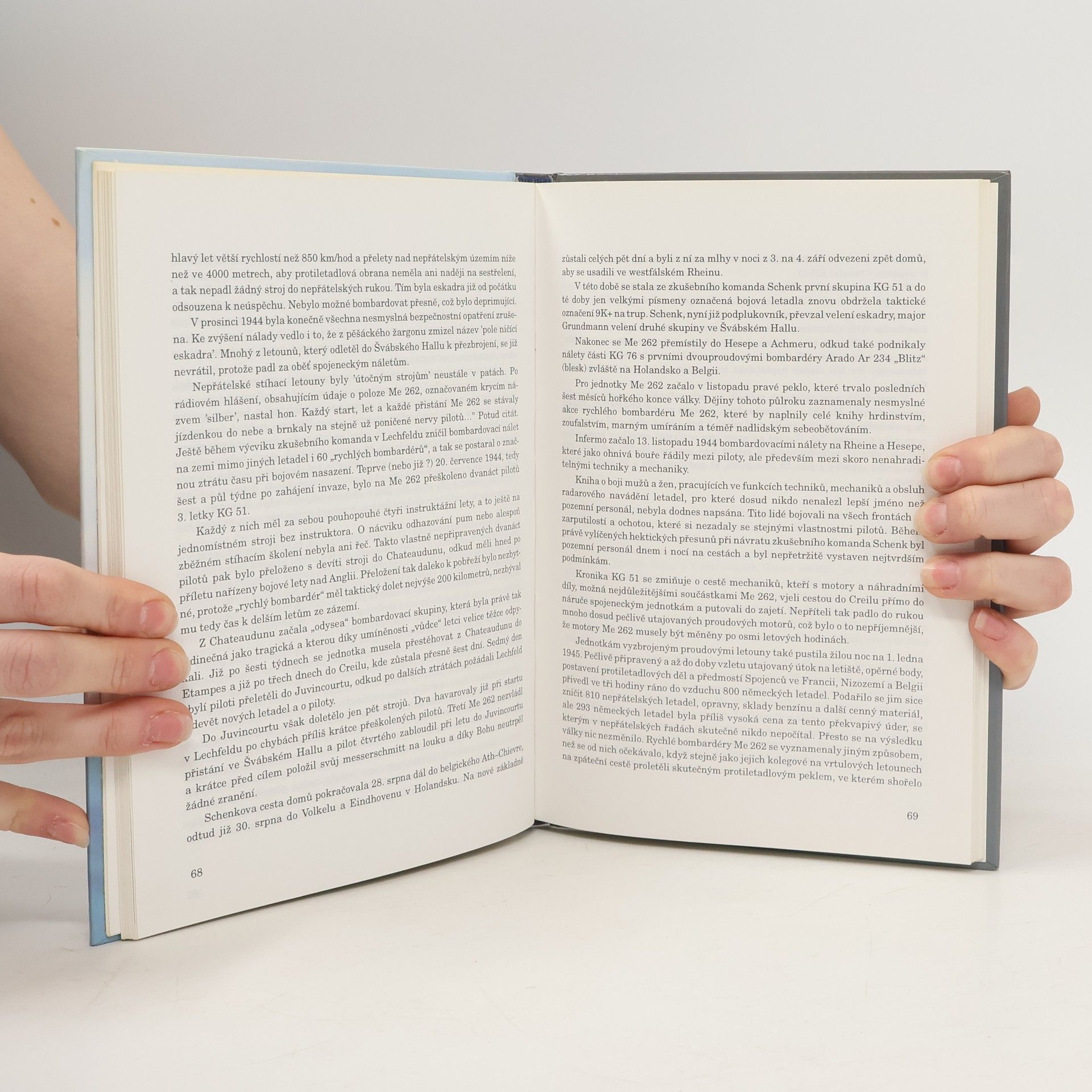 Kniha v 21 kapitolách predstavuje vznik, vývoj a bojové použitie jedného z najznámejších nemeckých lietadiel 2. svetovej vojny, prúdovej stíhačky a stíhacieho bombardéru Messerschmitt Me 262. Ponúka množstvo spomienok pilotov, zaujímavé fotografie (napríklad prierezy rôznych plánovaných verzií Messerschmittu Me 262) a v podstate popisuje celú históriu tohto lietadla od letu prvých prototypov až po ťažké a v podstate už zbytočné boje, ktorých sa zúčastňovali Messerschmitty Me 262 v priebehu roka 1944 až do konca vojny. Jej autorom je nemecký pilot Mano Ziegler, ktorý túto knihu venoval ako pomiatku svojim spolubojovníkom: Heinz Bär, Walter Nowotny, Kurt Welter, ktorí boli vôbec najúspešnejšími stíhacími pilotmi bojujúcimi na tomto type lietadla a testovaciemu pilotovi Fritzovi Wendelovi, ktorý významne prispel pri vzniku a vývoji Messerschmittu Me 262.