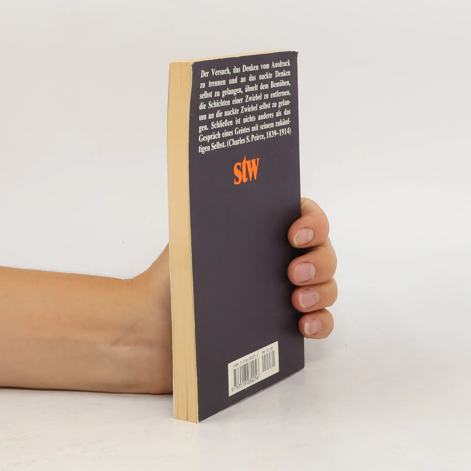 Dieser Band ist eine Übersetzung von Peirces Syllabus of Certain Topics of Logic, eines in weiten Teilen bisher auch im Englischen noch nicht veröffentlichten Manuskriptes. Der Titel Syllabus hat ausschließlich die von ihm dort als »spekulative Grammatik« oder auch »Physiologie der Formen« bezeichnete allgemeine Zeichentheorie zum Gegenstand.