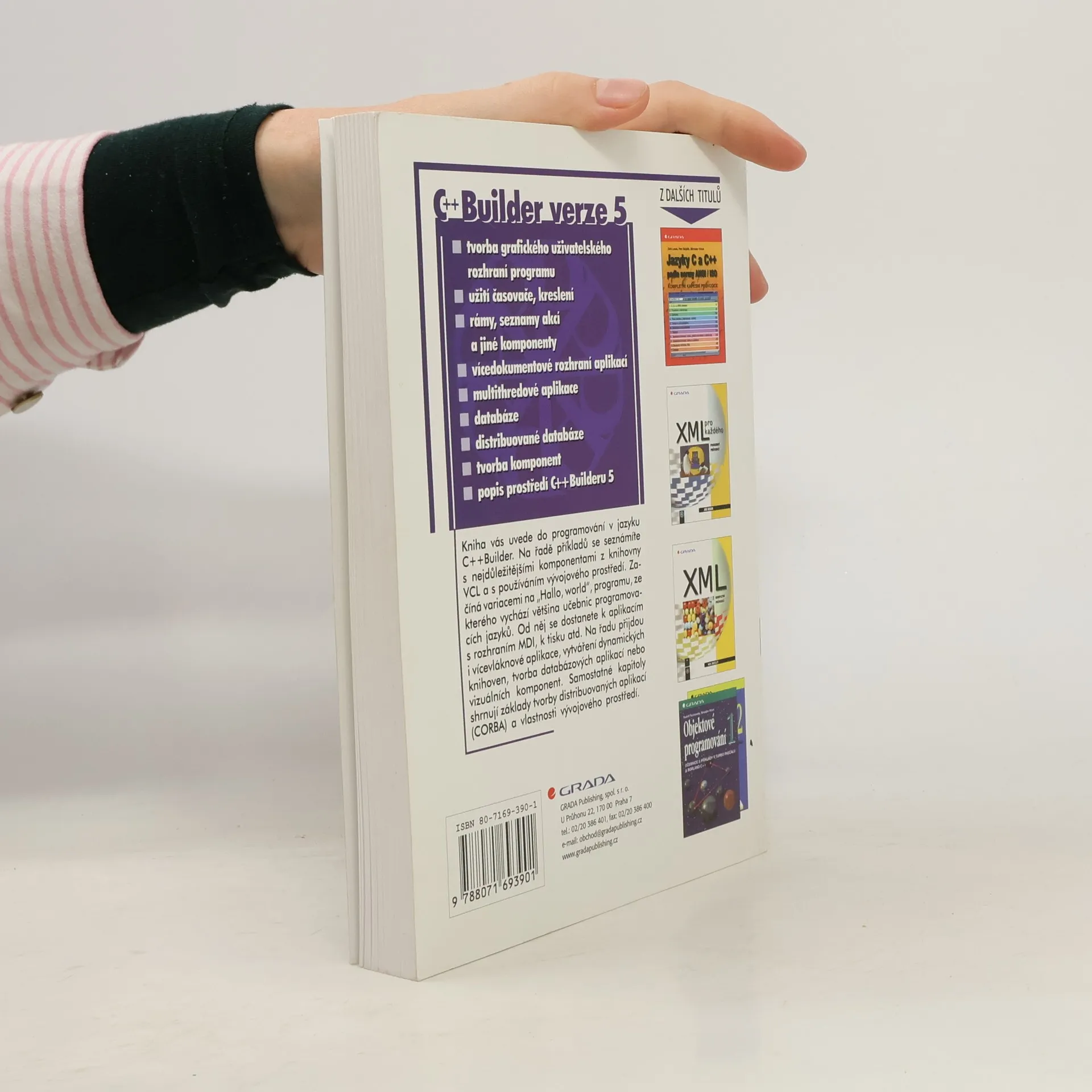 Kniha vás uvede do programování v jazyku C++Builder. Na řadě příkladů se seznámíte s nejdůležitějšími komponentami z knihovny VCL a s používáním vývojového prostředí. Začíná variacemi na "Hello, world", programu, ze kterého vychází většina učebnic programovacích jazyků. Od něj se dostanete k aplikacím s rozhraním MDI, k tisku, atd. Na řadu přijdou i vícevláknové aplikace, vytváření dynamických knihoven, tvorba databázových aplikací nebo vizuálních komponent. Samostatné kapitoly shrnují základy tvorby distribuovaných aplikací (CORBA) a vlastnosti vývojového prostředí. Z obsahu: - tvorba grafického uživatelského rozhraní programu - užití časovače, kreslení - rámy, seznamy akcí a jiné komponenty - vícedokumentové rozhraní aplikací - multithreadové aplikace - databáze - distribuované databáze - tvorba komponent - popis prostředí C++Builderu 5