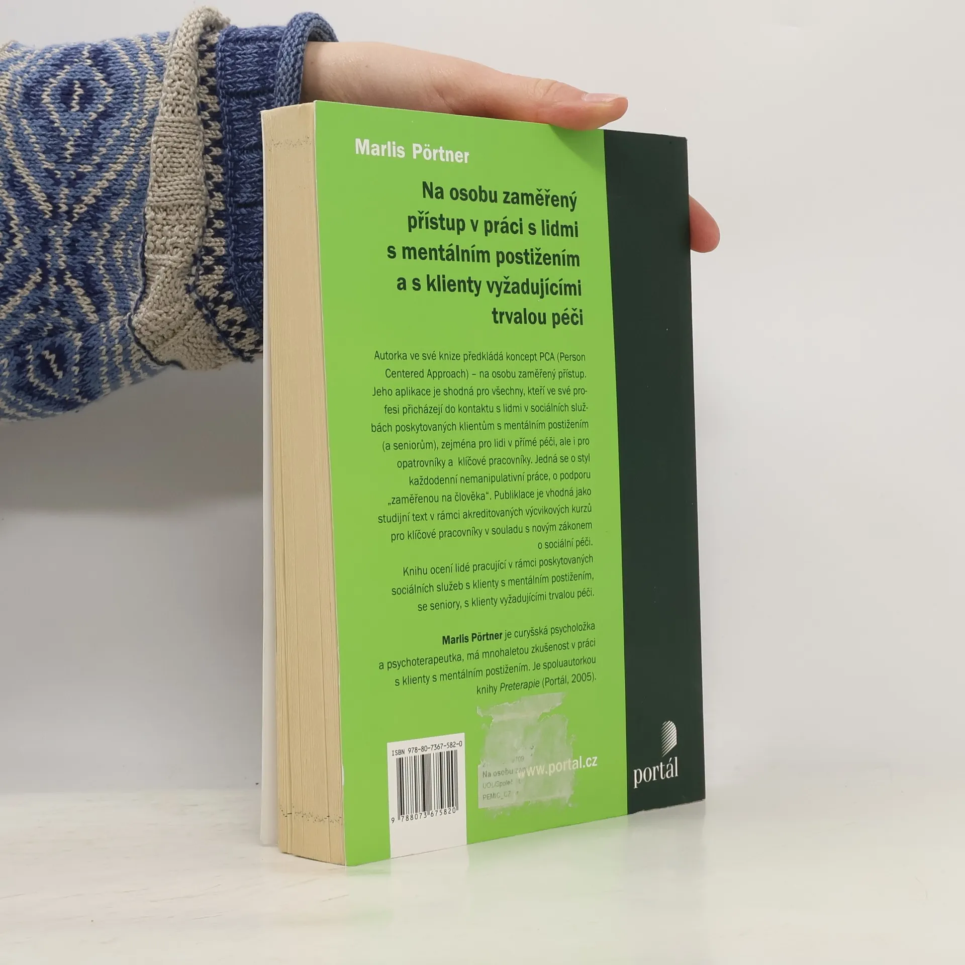 Autorka ve své knize předkládá koncept PCA (Person Centered Approach) na osobu zaměřený přístup. Aplikuje jej pro všechny, kteří ve své profesi přichází do kontaktu s lidmi v sociálních službách poskytovaných klientům s mentálním postižením (a seniorům), zejména pro lidi v přímé péči, ale i pro opatrovníky, klíčové pracovníky atd. Jedná se o styl každodenní nemanipulativní práce, o podporu zaměřenou na člověka. Kniha je vhodná jako studijní text v rámci akreditovaných výcvikových kurzů pro klíčové pracovníky v souladu s novým zákonem o sociální péči. Knihu ocení lidé pracující v rámci poskytovaných sociálních služeb s klienty s mentálním postižením, se seniory, s klienty vyžadujícími trvalou péči. Marlis Pörtner je curyšská psycholožka a psychoterapeutka, má mnohaletou zkušenost v práci s klienty s mentálním postižením. Je spoluautorkou knihy Preterapie.