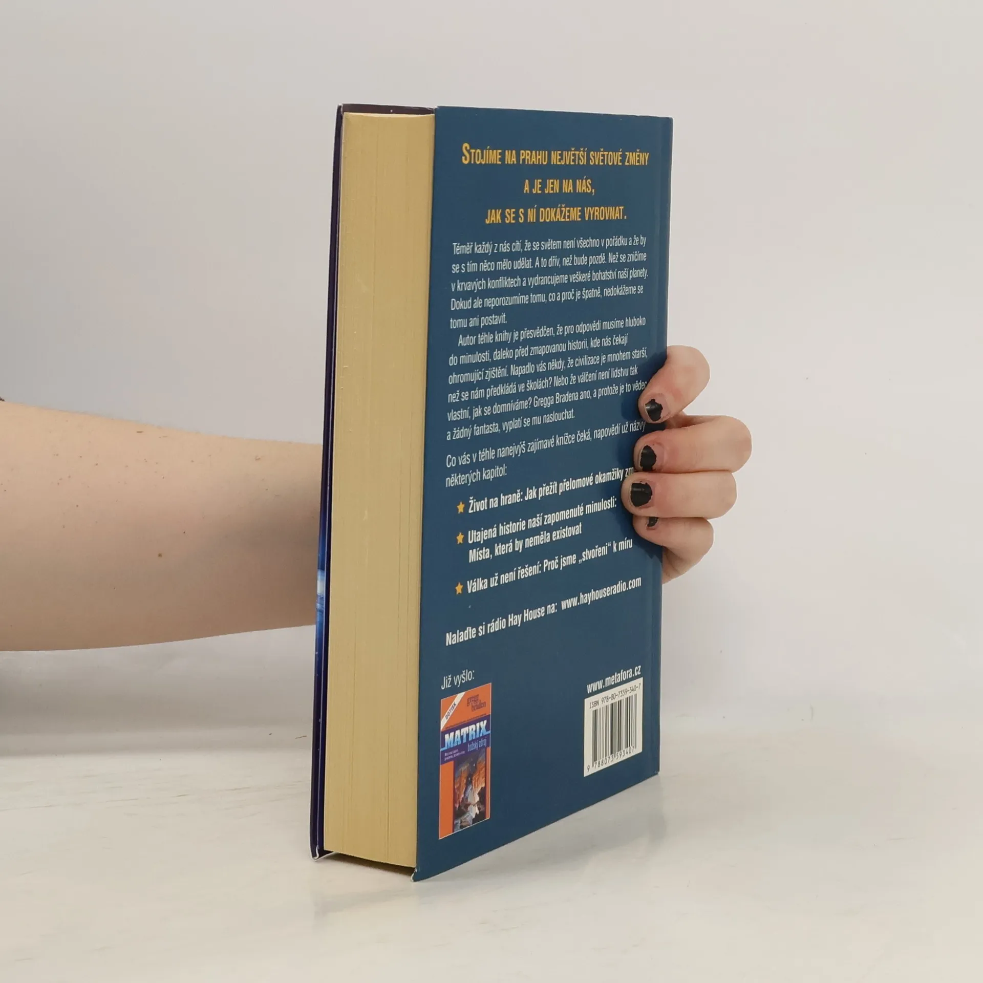Téměř každý z nás cítí, že se světem není všechno v pořádku a že by se s tím něco mělo udělat. A to dřív, než se zničíme v krvavých konfliktech a vydrancujeme veškeré bohatství naší planety. Dokud ale neporozumíme tomu, co a proč je špatně, nedokážeme se tomu ani postavit. Pro odpovědi musíme ovšem hluboko do minulosti, daleko před zmapovanou historii, kde nás čekají ohromující zjištění. Napadlo vás někdy, že civilizace je mnohem starší, než se nám předkládá ve školách? Nebo že válčení není lidstvu tak vlastní, jak se domníváme? Gregga Bradena ano, a protože je to vědec a žádný fantasta, vyplatí se mu naslouchat. Zdá se, že historie se v obrovských cyklech opakuje a že právě teď se ke konci jednoho takového "světového věku" rychle blížíme.