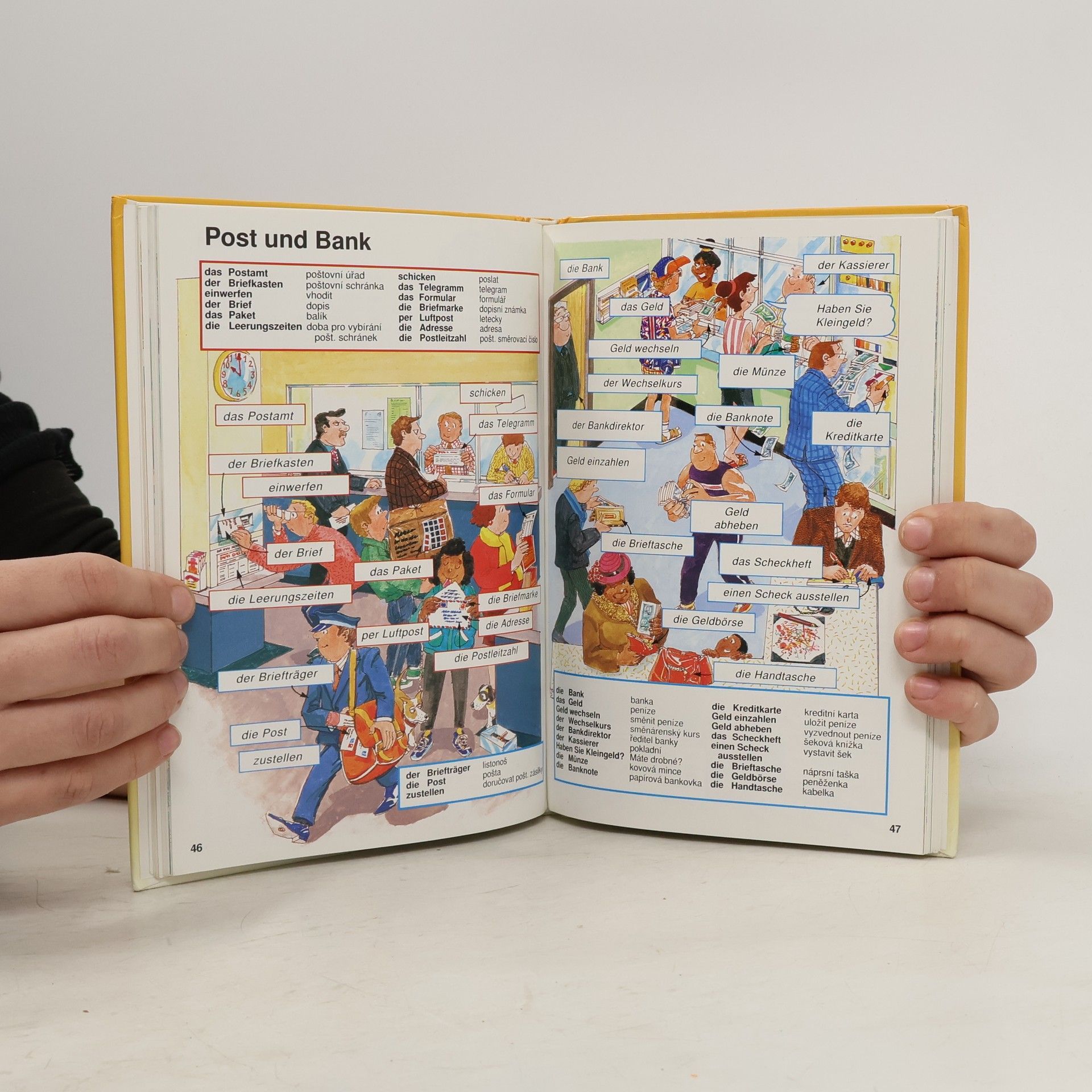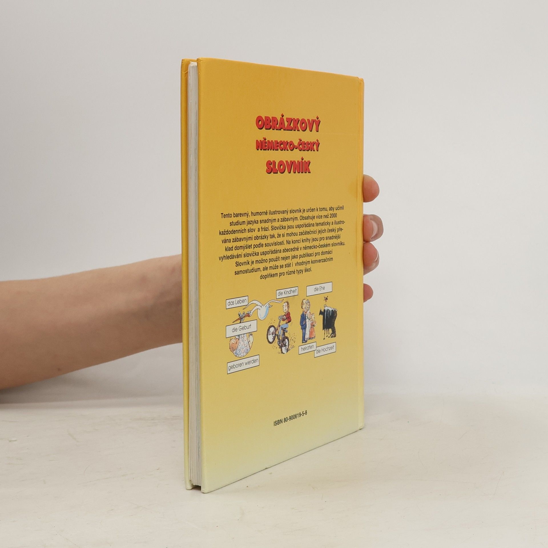 Barevný , humorně ilustrovaný slovník obsahuje více než 2000 slov a frází, tematicky seřazených s ohledem na každodenní běžné situace.