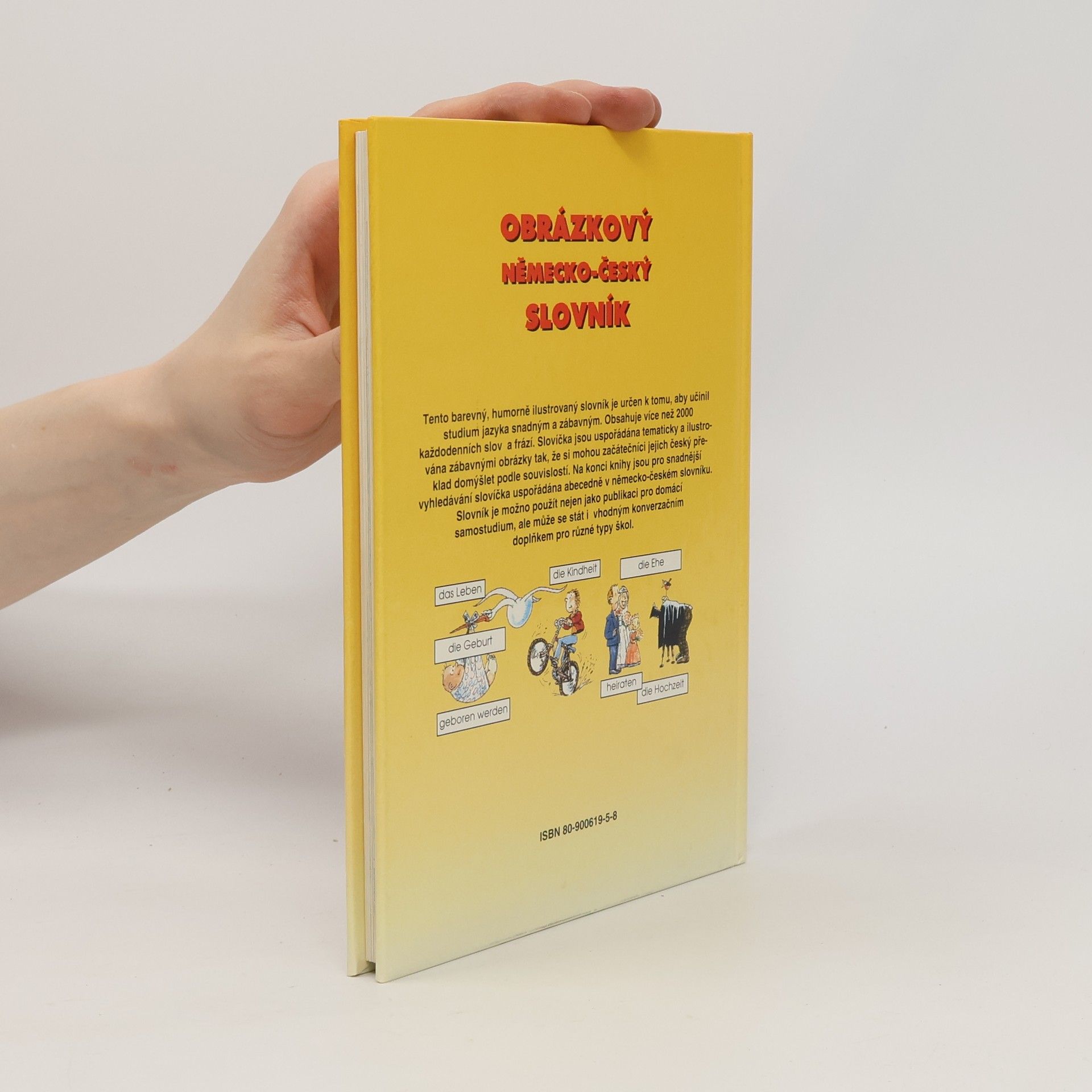 Barevný , humorně ilustrovaný slovník obsahuje více než 2000 slov a frází, tematicky seřazených s ohledem na každodenní běžné situace.