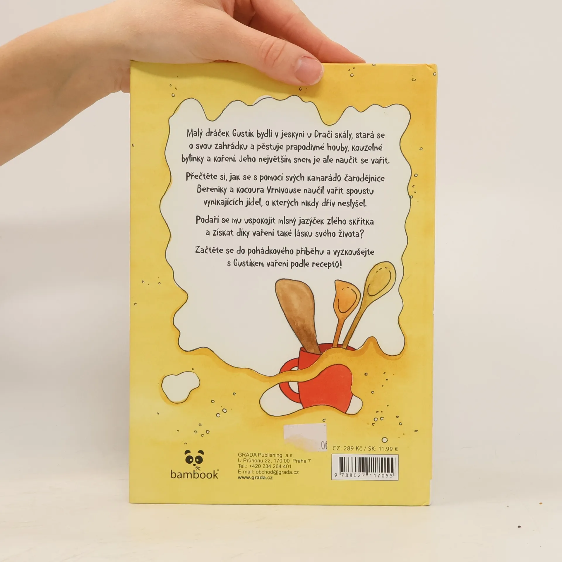 Malý dráček Gustík bydlí v jeskyni u Dračí skály, stará se o svou zahrádku a pěstuje prapodivné houby, kouzelné bylinky a koření. Jeho největším snem je ale naučit se vařit. Přečtěte si, jak se s pomocí svých kamarádů čarodějnice Bereniky a kocoura Vrnivouse naučil vařit spoustu vynikajících jídel, o kterých nikdy dřív neslyšel. Podaří se mu uspokojit mlsný jazýček zlého skřítka a získat díky vaření také lásku svého života? Začtěte se do pohádkového příběhu a vyzkoušejte s Gustíkem vaření podle receptů!