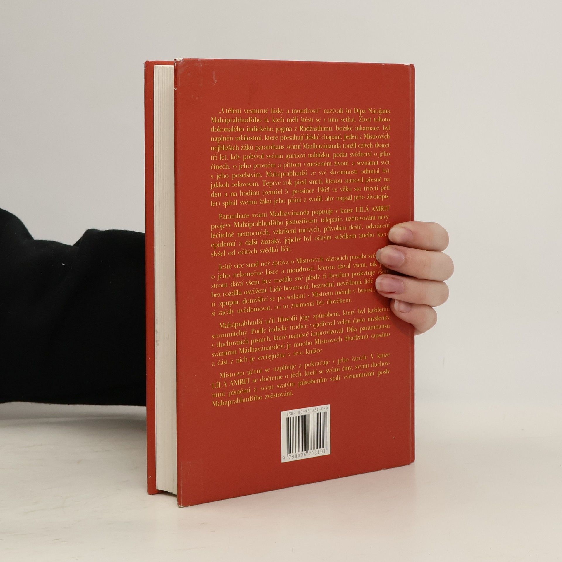 Život božského Mistra šrí Maháprabhudžího Životopis božského Mistra šrí Maháprabhudžího napsal jeden z jeho nejbližších žáků. Ti, kdo měli možnost se s ním setkat, ho nazývali „vtělením vesmírné lásky a moudrosti“. Byl to jogín z Rádžastanu, jehož život byl naplněn událostmi, které přesahují lidské chápání. Autor popisuje v knize projevy Maháprabhudžího jasnozřivosti, telepatie, uzdravování nemocných, přivolávání deště a další zázraky, jichž byl za 23 let, kdy pobýval v jeho blízkosti svědkem. Lidé sobečtí, domýšliví a vzpupní se po setkání s Mistrem měnili v bytosti, které si začaly uvědomovat, co to znamená být člověkem