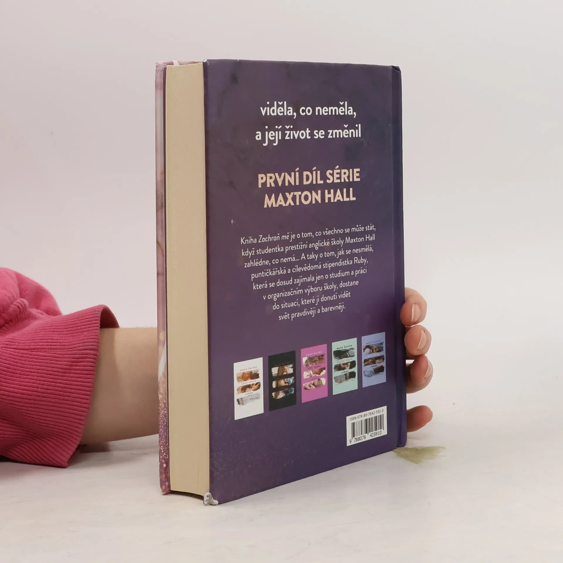 Kniha Zachraň mě je o tom, co se všechno může stát, když studentka prestižní školy Maxton Hall v Anglii uvidí, co nemá… Taky o tom, jak se nesmělá, puntičkářská a cílevědomá stipendistka Ruby, která se dosud zajímala jen o studium a práci v Organizačním výboru pro školu, dostane do situací, které ji donutí vidět svět pravdivěji a barevněji. Rodina Ruby je docela obyčejná, ale harmonická, zatímco James je dědicem starobylého oděvního impéria a příkladem zkaženého, nevychovaného mladíka, který se snaží „užít si poslední rok na střední“. Kniha je o jejich vzájemné přitažlivosti a štěstí, které spolu nacházejí, ale o které musejí bojovat, a stále znovu jim uniká. Je o tom, jaké to je, projít se po prvé kampusem oxfordské univerzity, na které Ruby od dětství touží studovat, a přáních, která se možná splní. Jaké je, když se potkají na přijímacích zkouškách na Oxford daleko od domova… Kniha vás zve do světa dramatické první lásky, romantiky studentských let a napínavých okolností, které svět Ruby a Jamese obklopují.