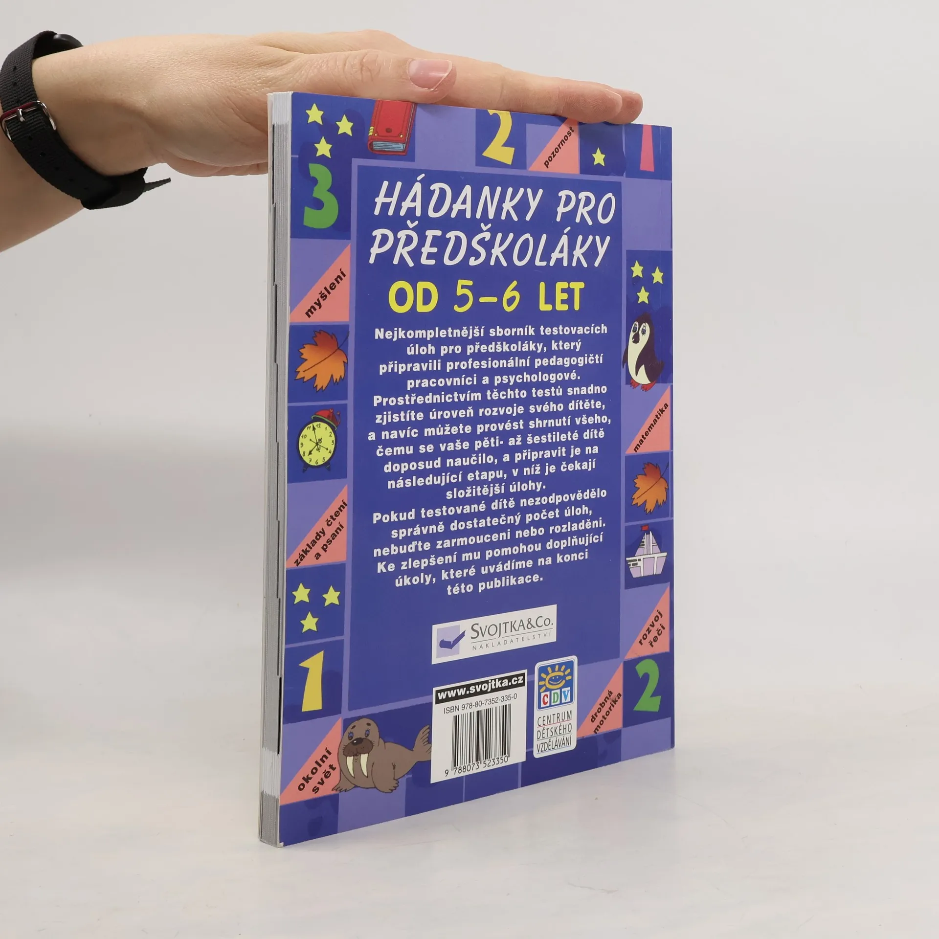 Nejkompletnější sborník testovacích úloh pro předškoláky, který připravili profesionální pedagogičtí pracovníci a psychologové. Prostřednictvím těchto testů snadno zjistíte úroveň rozvoje svého dítěte, a navíc můžete provést shrnutí všeho, čemu se vaše pěti- až šestileté dítě doposud naučilo, a připravit je na následující etapu, v níž je čekají složitější úlohy. Pokud testované dítě nezodpovědělo správně dostatečný počet úloh, nebuďte zarmouceni nebo rozladěni. Ke zlepšení dítěti pomohou doplňující úkoly, které uvádíme na konci této knihy.