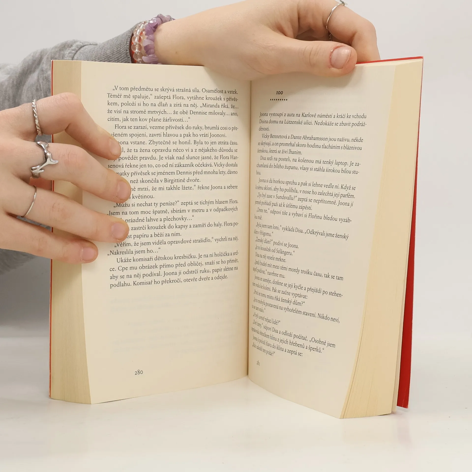 Inspektor Joona Linna již strávil na místě činu více času než kterýkoliv jiný detektiv. Stále má však pocit, že mu něco uniklo. Než odejde z toho hrůzostrašného pokoje, musí objevit nějaký detail, jehlu v kupce sena. Hledí na dívku v posteli. Obličej má zakrytý rukama, jako by si hrála na slepou bábu. Opatrně se k ní skloní. Pod nehtem ukazováčku na levé ruce spatří tmavočervenou tečku. Vypadá jako rudé zrnko písku nebo úlomek rubínu. Komisař se sklání blíž a blíž, až ucítí sladkou vůni. A náhle pochopí, co má dívka pod nehtem… Policie při vyšetřování komplikovaných případů běžně využívá pomoci spiritistických médií, není však známo, že by takováto spolupráce někdy přinesla ovoce… Flora Hansenová se rozhodne oznámit policii, že se jí podařilo spojit s duchem zavražděné dívky.
