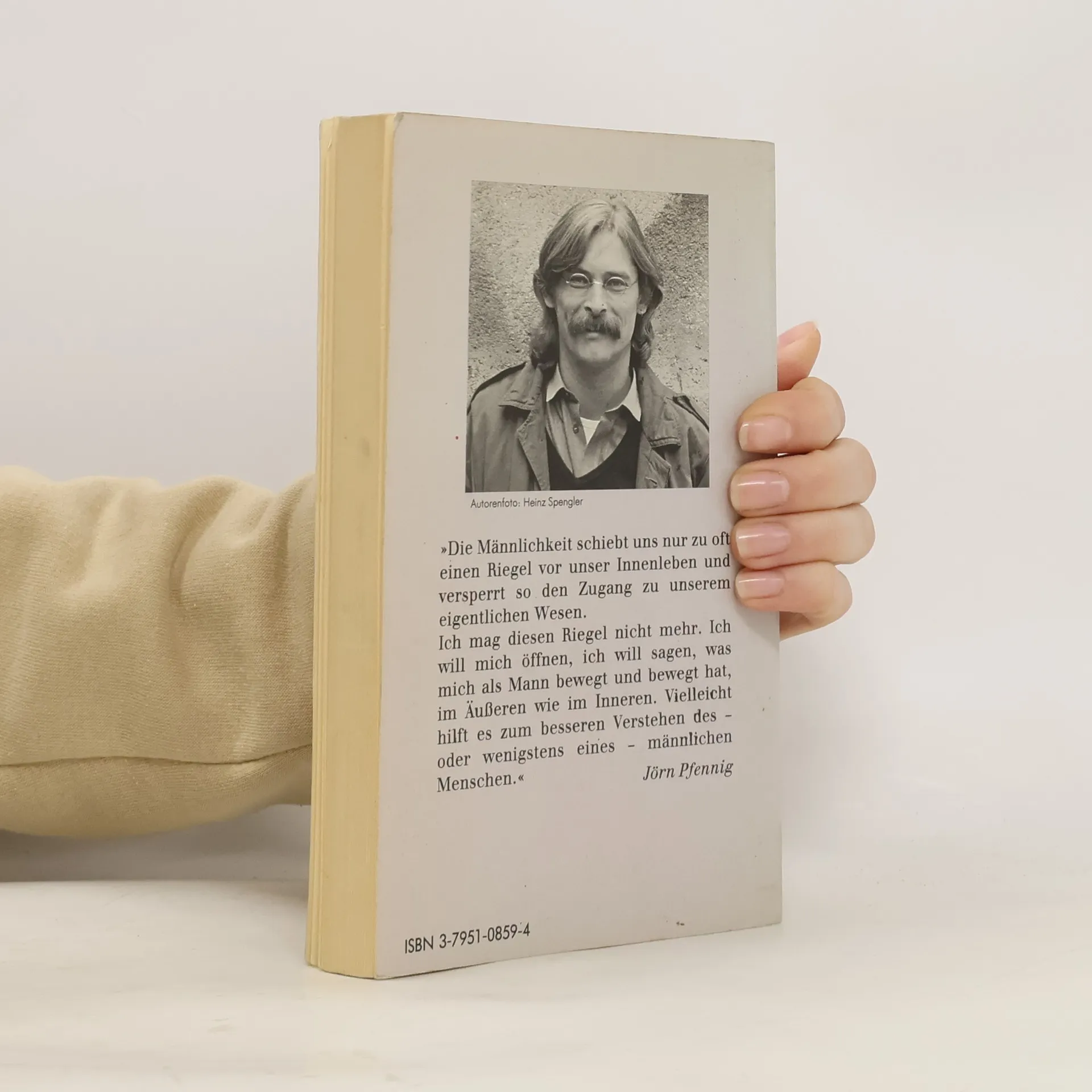 Die Männlichkeit schiebt uns nur zu oft einen Riegel vor unser Innenleben und versperrt so den Zugang zu unserem eigentlichen Wesen. Ich mag diesen Riegel nicht mehr. Ich will mich öffnen, ich will sagen, was mich als Mann bewegt und bewegt hat, im Äußeren wie im Inneren. Vielleicht hilft es zum besseren Verstehen des - oder wenigstens eines - männlichen Menschen."