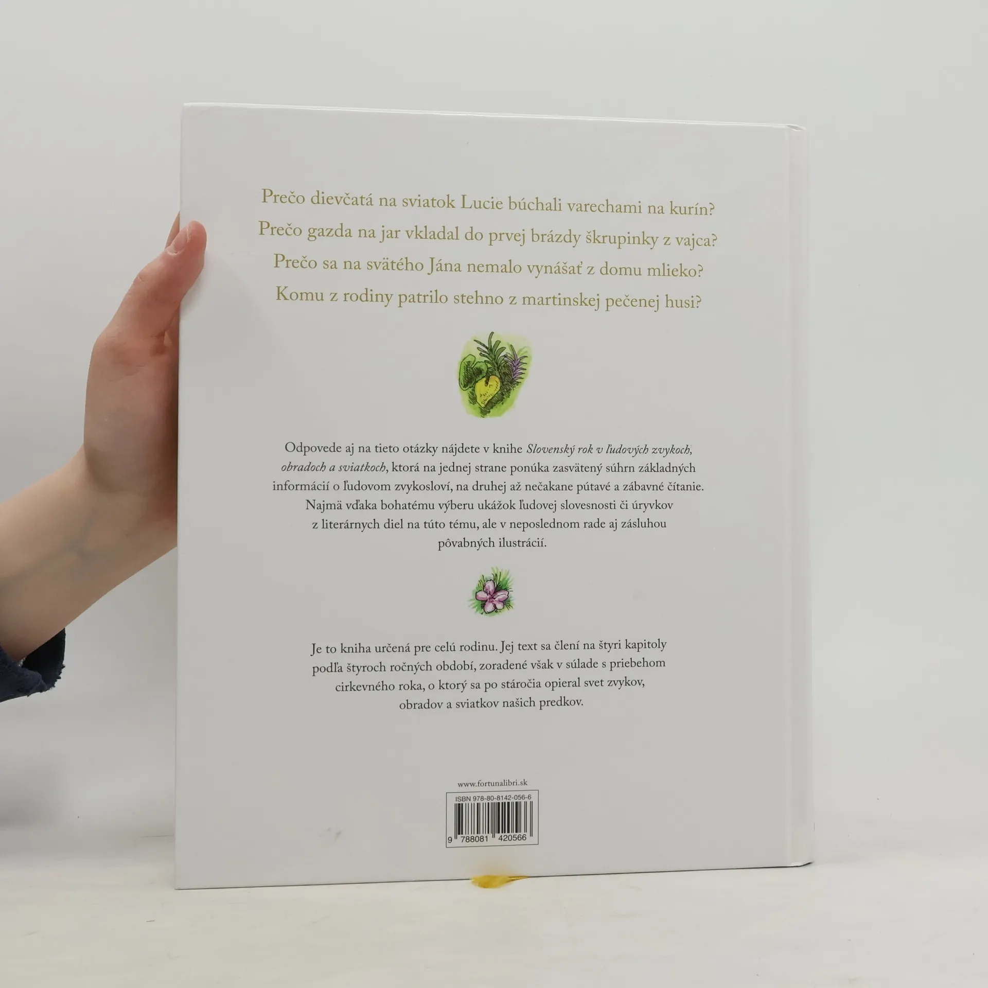 Prečo dievčatá na sviatok Lucie búchali varechami na kurín? Prečo gazda na jar vkladal do prvej brázdy škrupinky z vajca? Prečo sa na svätého Jána nemalo vynášať z domu mlieko? Komu z rodiny patrilo stehno z martinskej pečenej husi? Odpovede aj na tieto otázky nájdete v knihe Slovenský rok v ľudových zvykoch, obradoch a sviatkoch, ktorá na jednej strane ponúka zasvätený súhrn základných informácií o ľudovom zvykosloví, na druhej až nečakane pútavé a zábavné čítanie. Najmä vďaka bohatému výberu ukážok ľudovej slovesnosti či úryvkov z literárnych diel na túto tému, ale v neposlednom rade aj zásluhou pôvabných ilustrácií. Je to kniha určená pre celú rodinu. Jej text sa člení na štyri kapitoly podľa štyroch ročných období, zoradené však v súlade s priebehom cirkevného roka, o ktorý sa po stáročia opieral svet zvykov, obradov a sviatkov našich predkov.