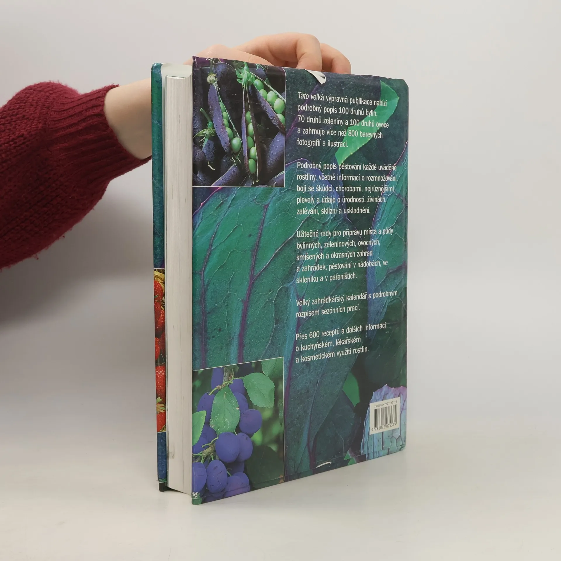 Chcete jíst více čerstvé zeleniny a ovoce, které neobsahují škodlivé látky? Ať máte k dispozici pouze truhlík na okně, malou zahrádku nebo lány pole, tato kniha Vám názorně poradí jak si zeleninu, bylinky a ovoce vypěstovat, sklidit a uvařit tak, aby v nich zůstalo co nejvíce živin. Rozsáhlá publikace podává kompletní údaje o bylinách, zelenině i ovocných plodinách a je uceleným průvodce světa zahrádkáření. Kniha nabízí podrobný popis 100 druhů bylin, 70 druhů zeleniny, 100 druhů ovoce včetně velkého množství barevných fotografií a ilustrací. Každá přehledná dvoustránka popisuje různé druhy a odrůdy určitého ovoce či zeleniny, jejich pěstování , ochranu, škůdce, léčivé účinky, použití v kuchyni a v neposlední řadě originální nízkokalorické recepty vhodné nejen k udržení ideální váhy ale i k podpoře zdraví a imunity. Obsahuje více než 800 receptů. Nedílnou součástí je velký zahrádkářský kalendář s rozpisem sezóních prací.