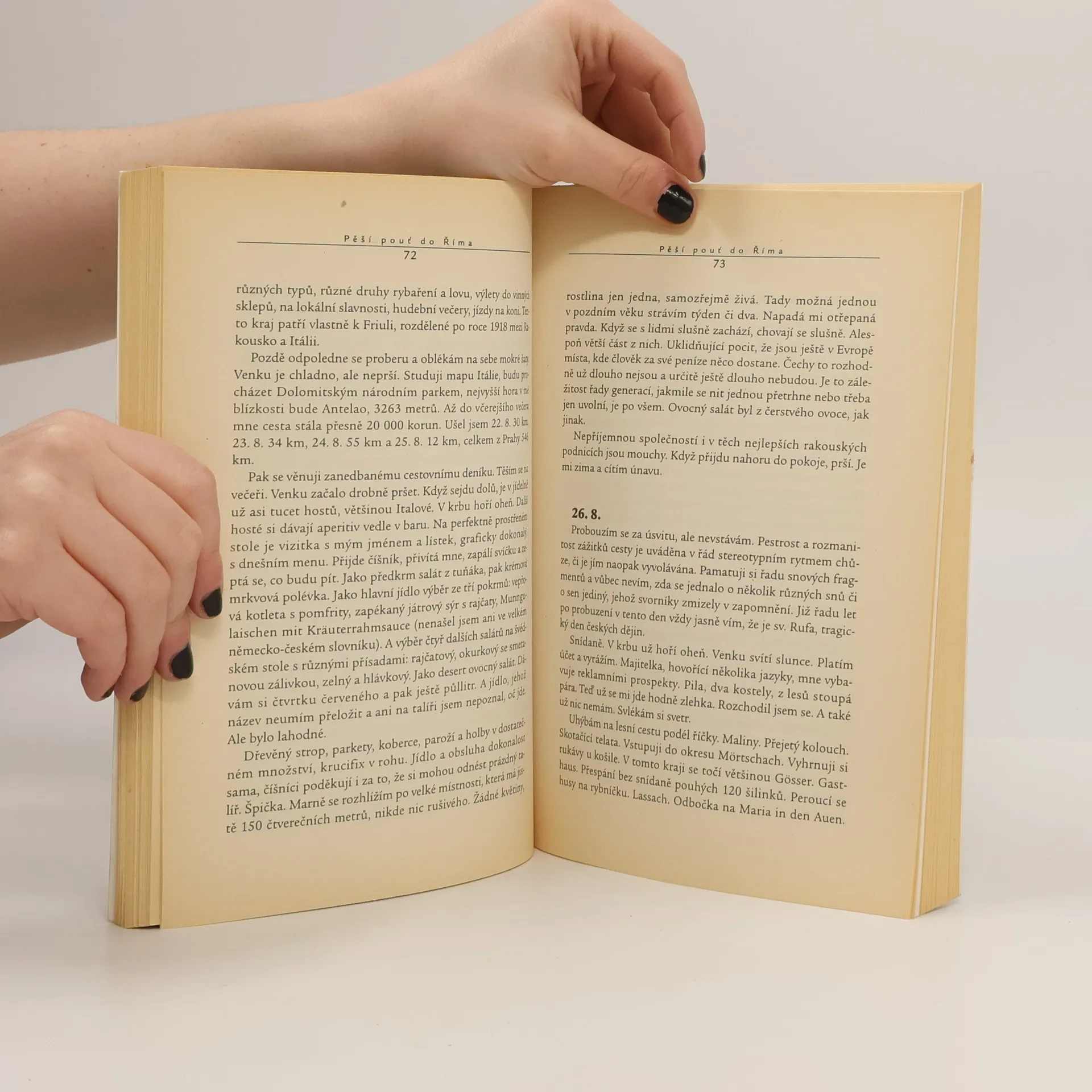 Deníkovou formou napsaná reportáž z pěší poutě do Říma. Autor knihy začíná svou pouť v Praze, přes Jižní Čechy, Šumavu a Český les se dostává do Německa a posléze do Rakouska. Dále přes Alpy přechází do Itálie a po 44 dnech pěší chůze lesními stezkami a málo frekventovanými cestami dosahuje cíle své cesty - Říma, Vatikánu. Kniha je napsána formou cestovního deníku, v němž autor popisuje místa, jimiž prochází, a lidi, se kterými se na své pouti setkává. Jejich reakce na jeho, v dnešní době už nezvyklé, pěší putování.