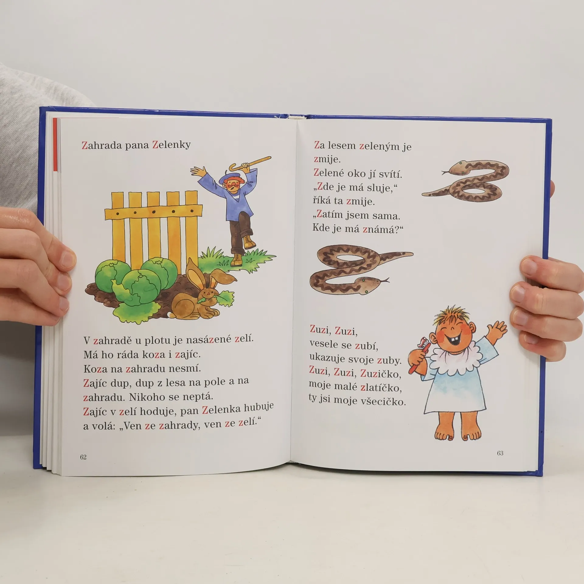 Knížka určená k prvnímu čtení, kde se děti přes písmenka, slabiky, slova dostávají k jednoduchým textům. Doplněno veselými obrázky. Postupné poznávání písmen abecedy, obrázkové čtení, hra se sklabikami, čtení slov až k jednoduchým textům motivuje děti k učení. Mohou zde nalézttéž hádanky, tajenky, rébusy.