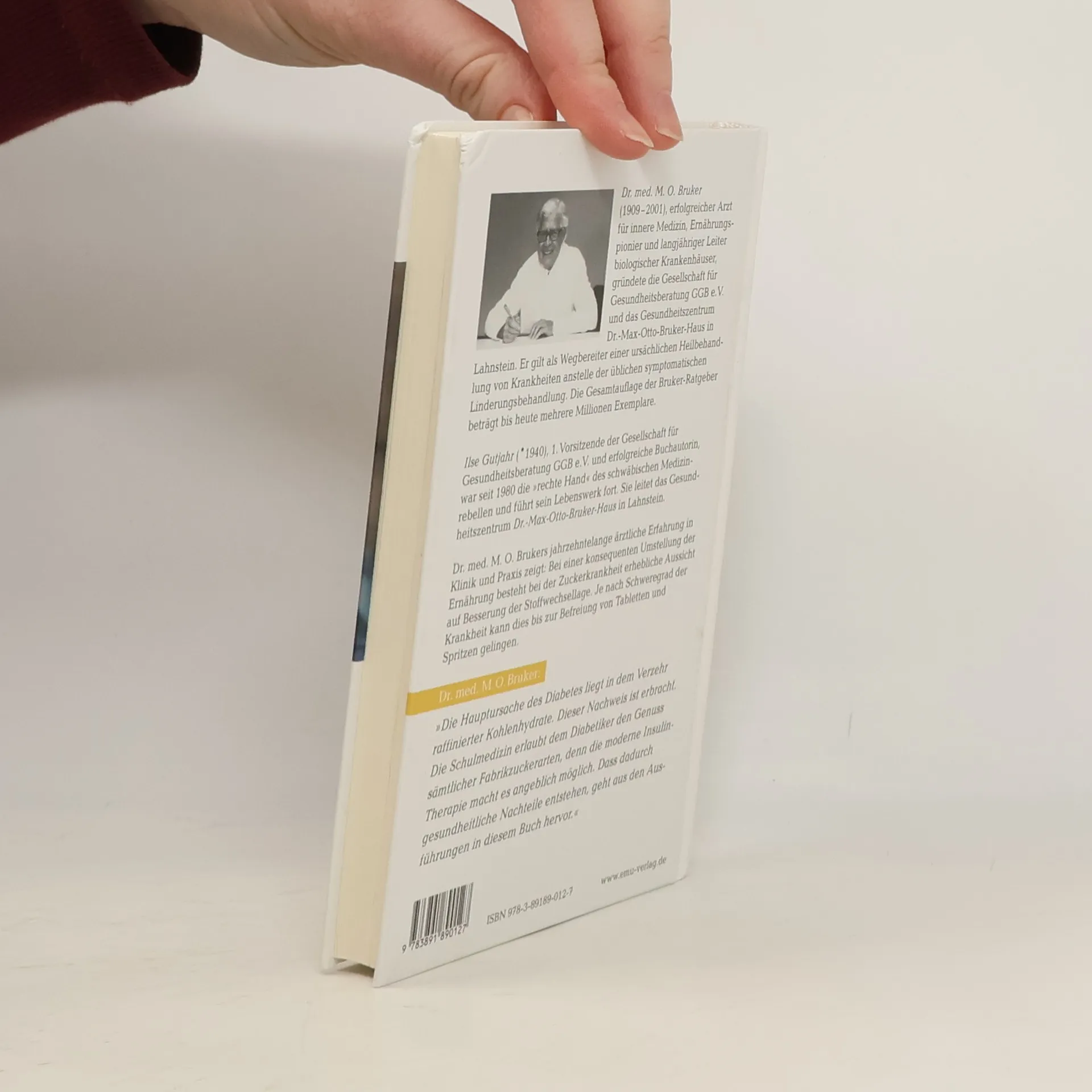 Dr. med. M. O. Bruker, Jahrgang 1909, zeigt auf Grund jahrzehntelanger ärztlicher Erfahrung in Klinik und Praxis, dass durch konsequente Umstellung der Ernährung bei der Zuckerkrankheit Aussicht auf erhebliche Besserung der Stoffwechsellage besteht. Je nach Schweregrad der Krankheit kann eine Besserung bis zur Befreiung von Tabletten und Spritzen führen.