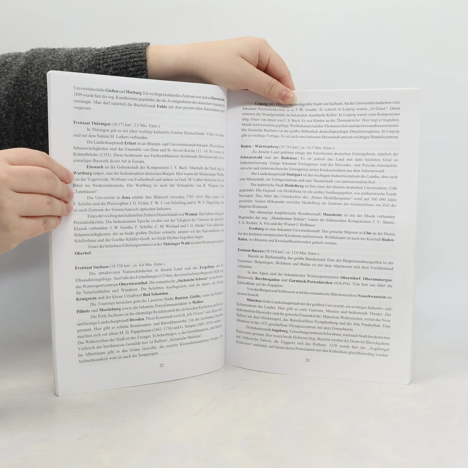 Příručka je určena především studentům středních škol. Obsahuje základní informace o německy mluvících zemích, tj. o SRN, Rakousku, Švýcarsku, Lichtenštejnsku a Lucembursku. Může sloužit nejen jako studijní materiál pro přípravu na maturitní zkoušku (asi 10 témat), ale lze ji využít též jako výchozího textu při výuce němčiny. Tomu je přizpůsoben i jazyk. Text je upraven podle nových pravidel německého pravopisu.