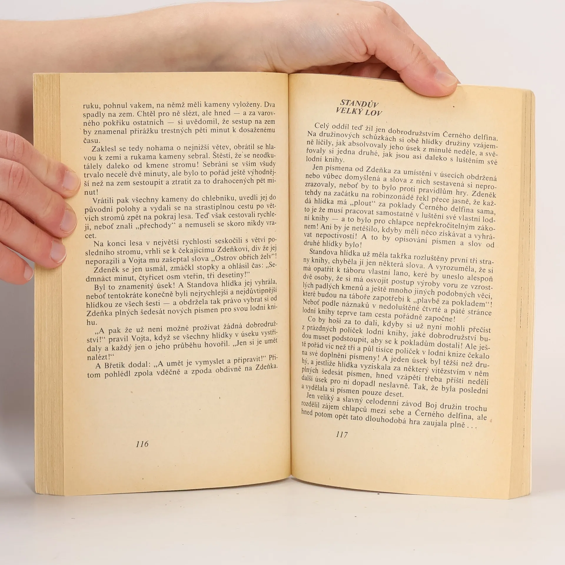 Děj dobrodružného příběhu dvou chlapců z Vinohrad Standy a Lojzka, kteří se neobvyklým způsobem dostanou do Turistického oddílu mládeže, se odehrává nejprve v uličkách Starého města a vrcholí na prázdninovém táboře na Zelené říčce pod Kriváněm na Slovensku při napínavé hře O poklad piráta ze škuneru Černý delfín. Román je na konci doplněn o popis několika her (kapitola "Misto doslovu" a další).... celý text