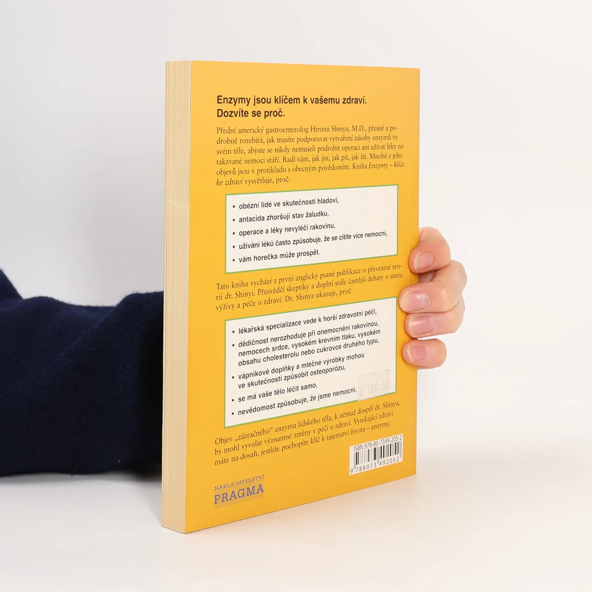 Přední americký gastroenterolog Hiromi Shinya, M.D., přesně a podrobně rozebírá, jak musíte podporovat vytváření zásoby enzymů ve svém těle, abyste se nikdy nemuseli podrobit operaci ani užívat léky na takzvané nemoci stáří. Objev "zázračného" enzymu lidského těla, k němuž dospěl dr. Shinya, by mohl vyvolat významné změny v péči o zdraví. Vynikající zdraví máte na dosah, jestliže pochopíte klíč k tajemství života - enzymy.