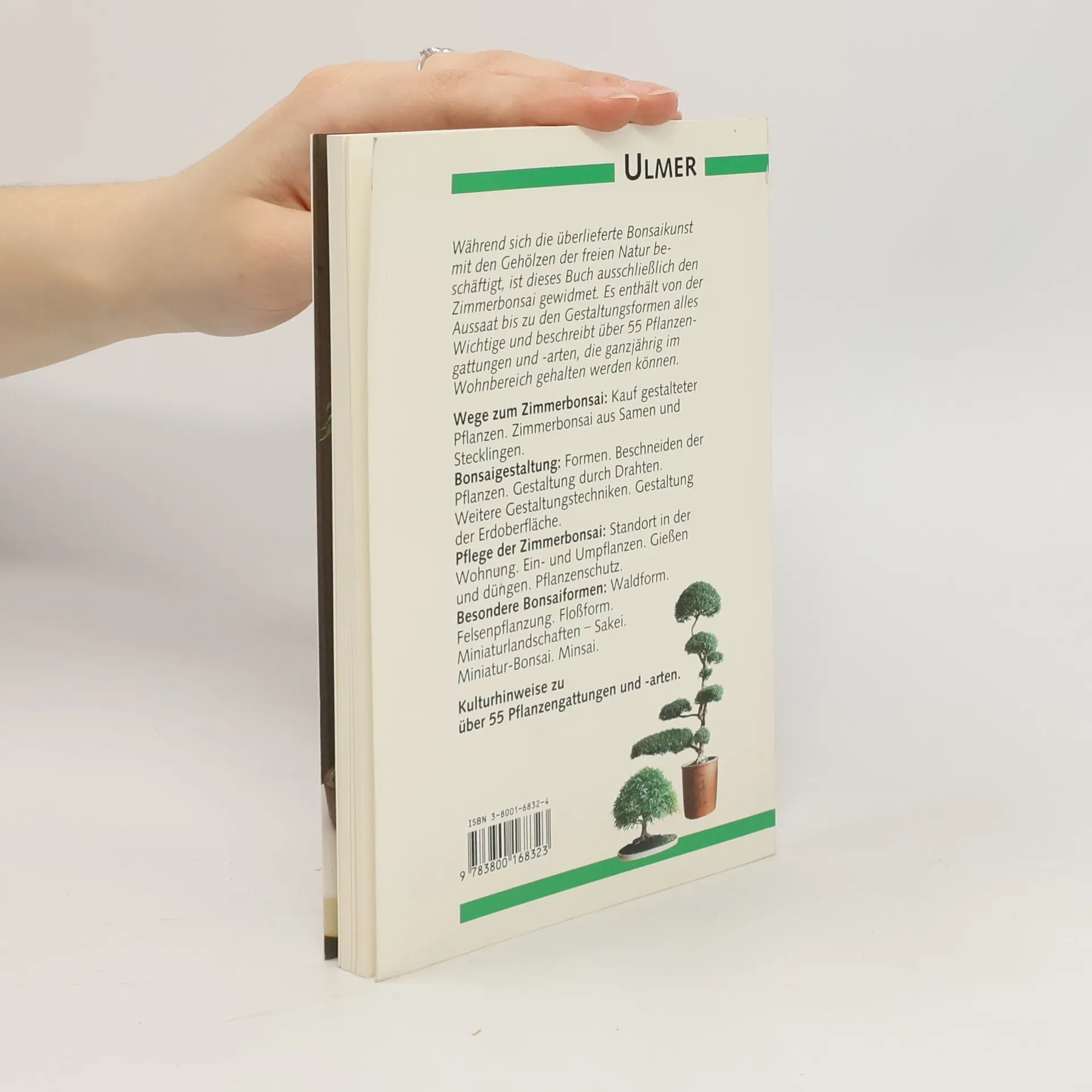 Während sich die überlieferte Bonsaikunst mit den Gehölzen der freien Natur beschäftigt, ist dieses Buch ausschliesslich den Zimmerbonsai gewidmet. Es enthält von der Aussaat bis zu den Gestaltungsformen alles Wichtige und beschreibt über 55 Pflanzengattungen und -arten, die ganzjährig im Wohnbereich gehalten werden können.