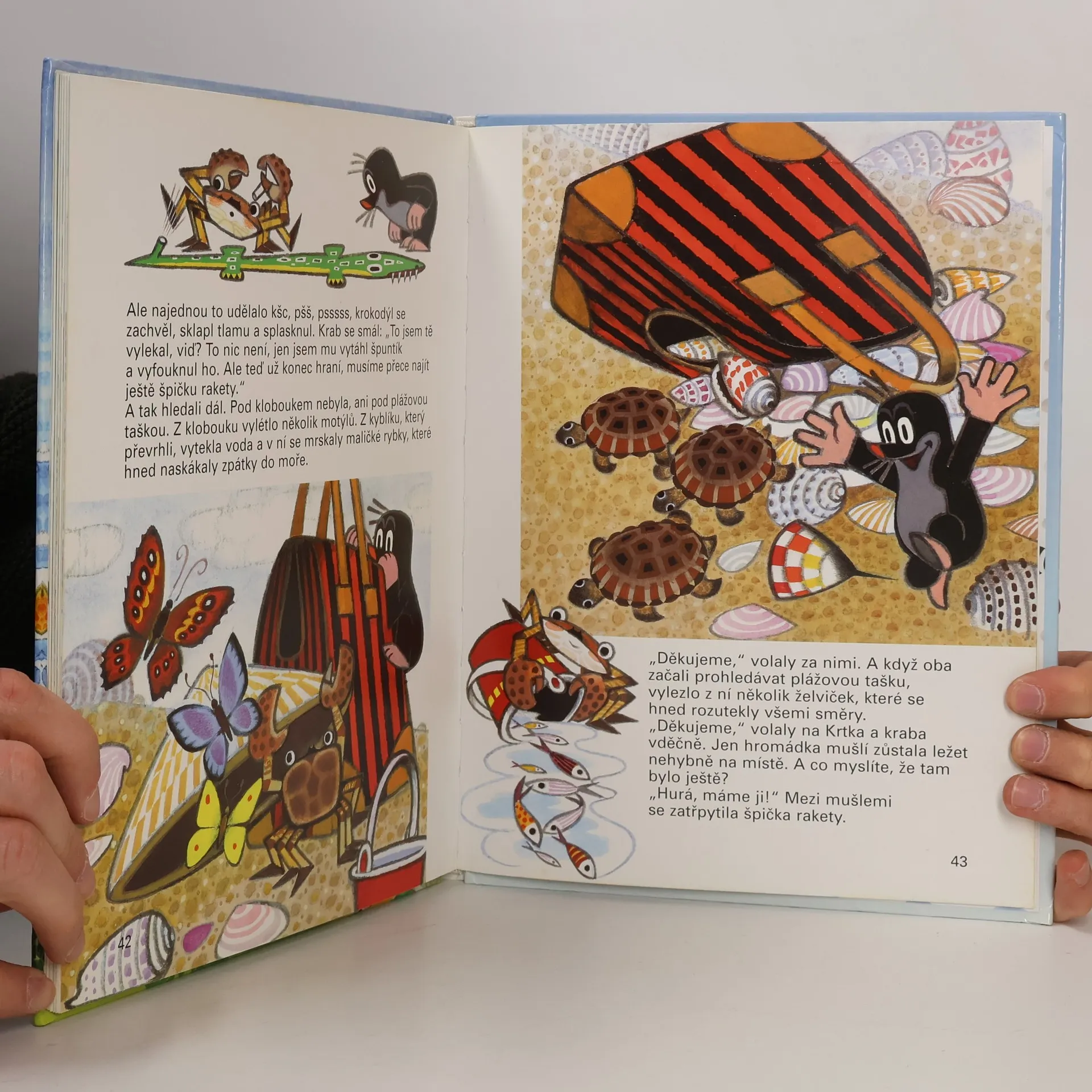 V knížce Krtek a raketa oblíbený Krteček podnikne skutečně dobrodružnou cestu. Jeho dopravním prostředkem je tentokrát raketa, se kterou doletí až na mořské pobřeží.