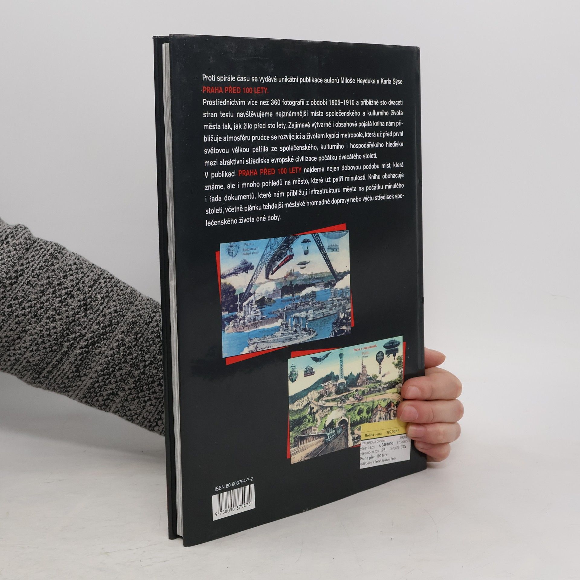 Proti spirále času se vydává unikátní publikace autorů Miloše Heyduka a Karla Sýse Praha před 100 lety. Prostřednictvím 220 fotografií z období 1905 -1910 a více než šedesáti stran textu navštěvujeme nejznámnější místa společenského a kulturního života města tak, jak žilo před sto lety. Zajímavě výtvarně i obsahově pojatá kniha nám přibližuje atmosféru prudce se rozvíjející a životem kypící metropole, která už před první světovou válkou patřila ze společenského, kulturního i hospodářského hlediska mezi atraktivní střediska evropské civilizace počátku dvacátého století. V publikaci Praha před 100 lety najdeme nejen dobovou podobu míst, která známe, ale i mnoho pohledů na město, které už patří minulosti. Publikaci obohacuje i řada dokumentů, které nám přibližují infrastrukturu města na počátku minulého století, včetně plánku tehdejší městské hromadné dopravy nebo výčtu středisek společenského života oné doby.