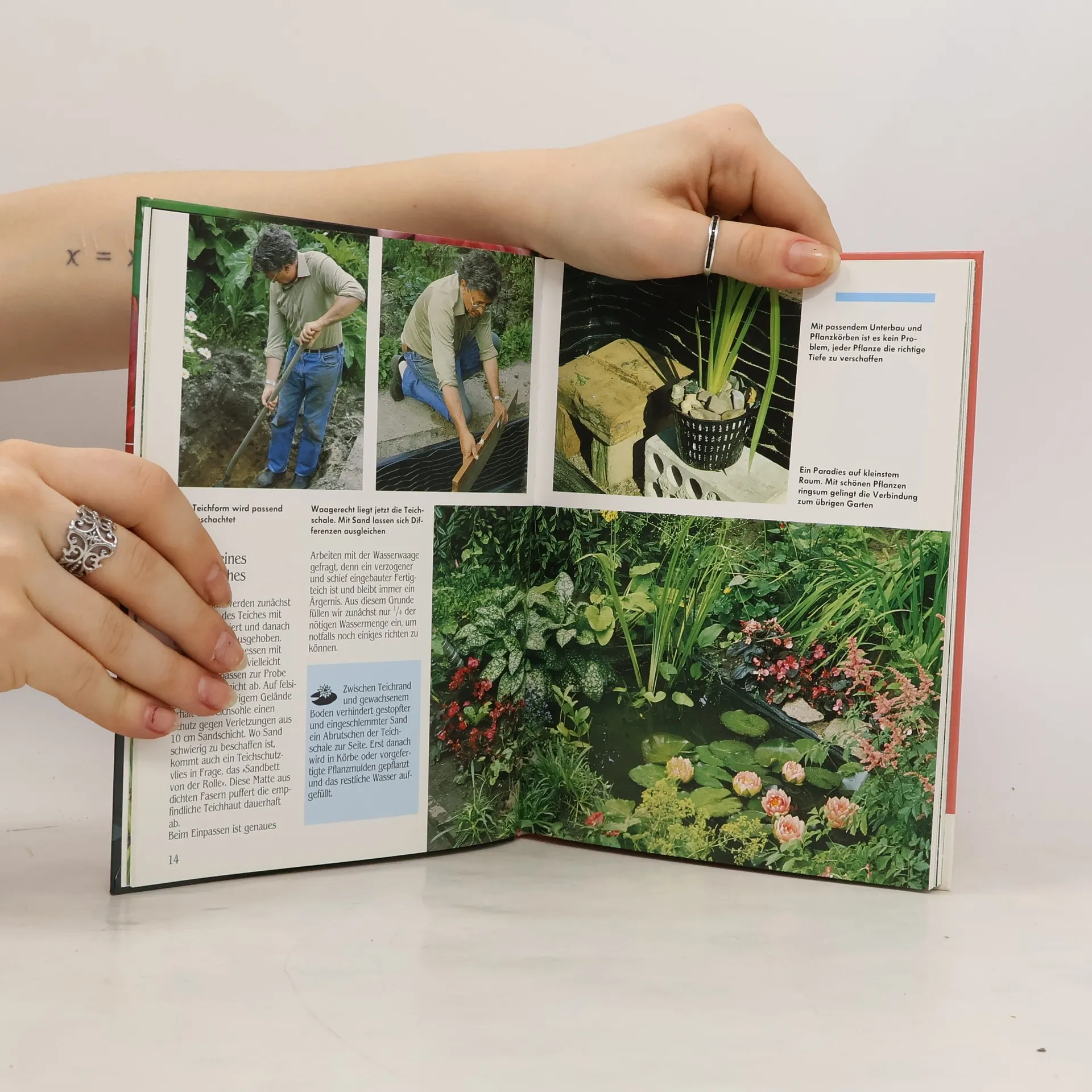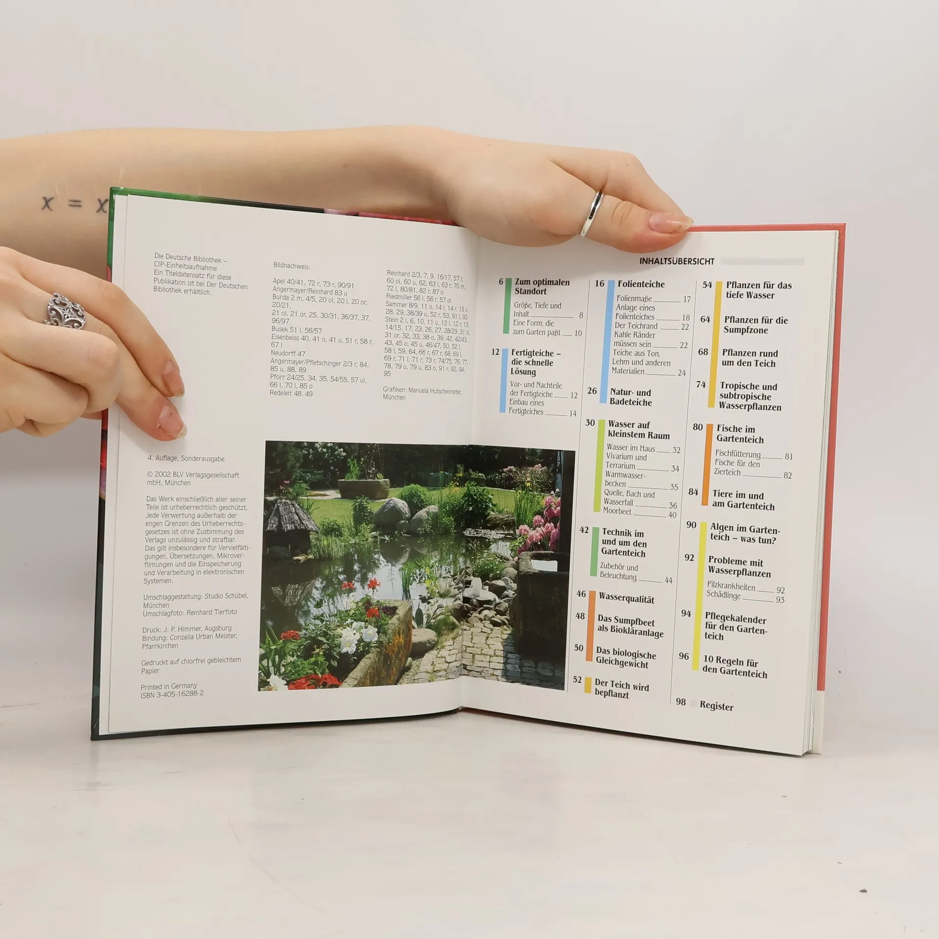 Folienteich, Fertigteich, Naturteich, Sumpfbeet, Bach, Technik, Wasserqualität, einheimische und exotische Pflanzen, Tiere im und am Gartenteich. Pflegekalender.