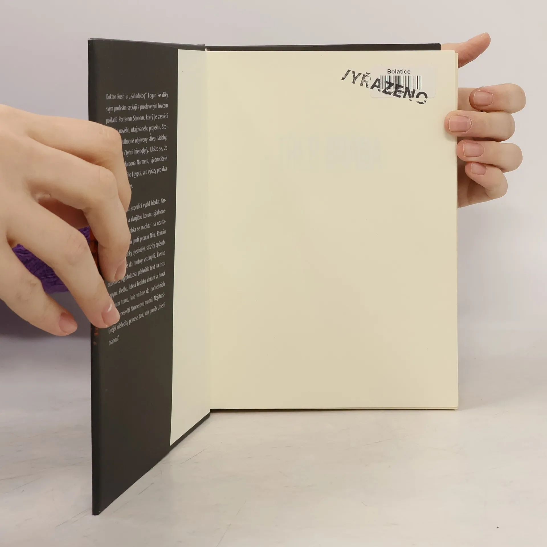Třetí brána skrývá tajemství, chráněné kletbou Doktor Rush a „záhadolog“ Logan se díky svým profesím setkají s proslaveným lovcem pokladů Porterem Stonem, který je zasvětí do svého nového, utajovaného projektu. Stonea zaujal náhodně objevený střep nádoby, ostrakon, se čtyřmi hieroglyfy. Ukáže se, že jde o jméno faraona Narmera, sjednotitele Horního a Dolního Egypta, a o výrazy pro dva záhadné předměty. Stone se s celou expedicí vydal hledat Narmerovu hrobku a dvojitou korunu sjednoceného Egypta. Hrobka se nachází na neznámém místě vysoko proti proudu Nilu. Román popisuje technicky ojedinělý, složitý způsob, jakým badatelé do hrobky vstoupili. Členka expedice, egyptoložka, přeložila text na listu papyru, kletbu, která hrobku chrání a hrozí zničením tomu, kdo vnikne do pohřebních komor a znesvětí Narmerovu mumii. Nejstrašlivější následky ponese ten, kdo projde „třetí bránou“.