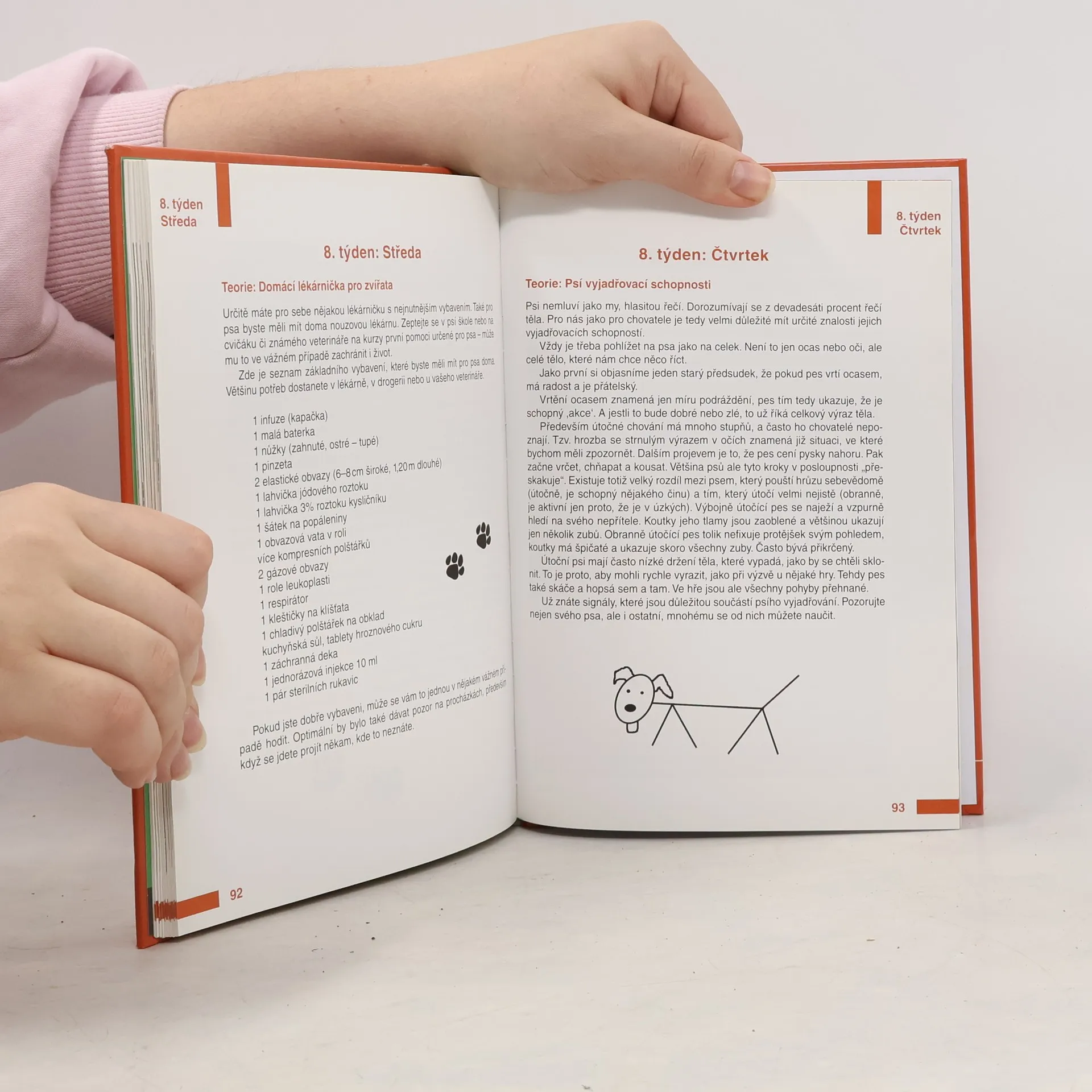 Výborně napsaná příručka pro čerstvé majitele pejska. Autorka je vede krok za krokem a radí den po dni, jak vychovávat štěně v průběhu prvních osmi týdnů jeho života. Toto období je totiž pro pozdější vývoj psa velice podstatné, a věnuje-li mu majitel dostatečnou pozornost, jistě se to odrazí ve větší radosti ze čtyřnohého přítele. V knize jsou patrné dlouholeté zkušenosti z trenérské a lékařské praxe, jež se projevují v racionálním pojetí psí výchovy, důraz se klade na pochopení psích projevů, nálad a upevnění návyků. Publikace je vybavena množstvím barevných fotografií.