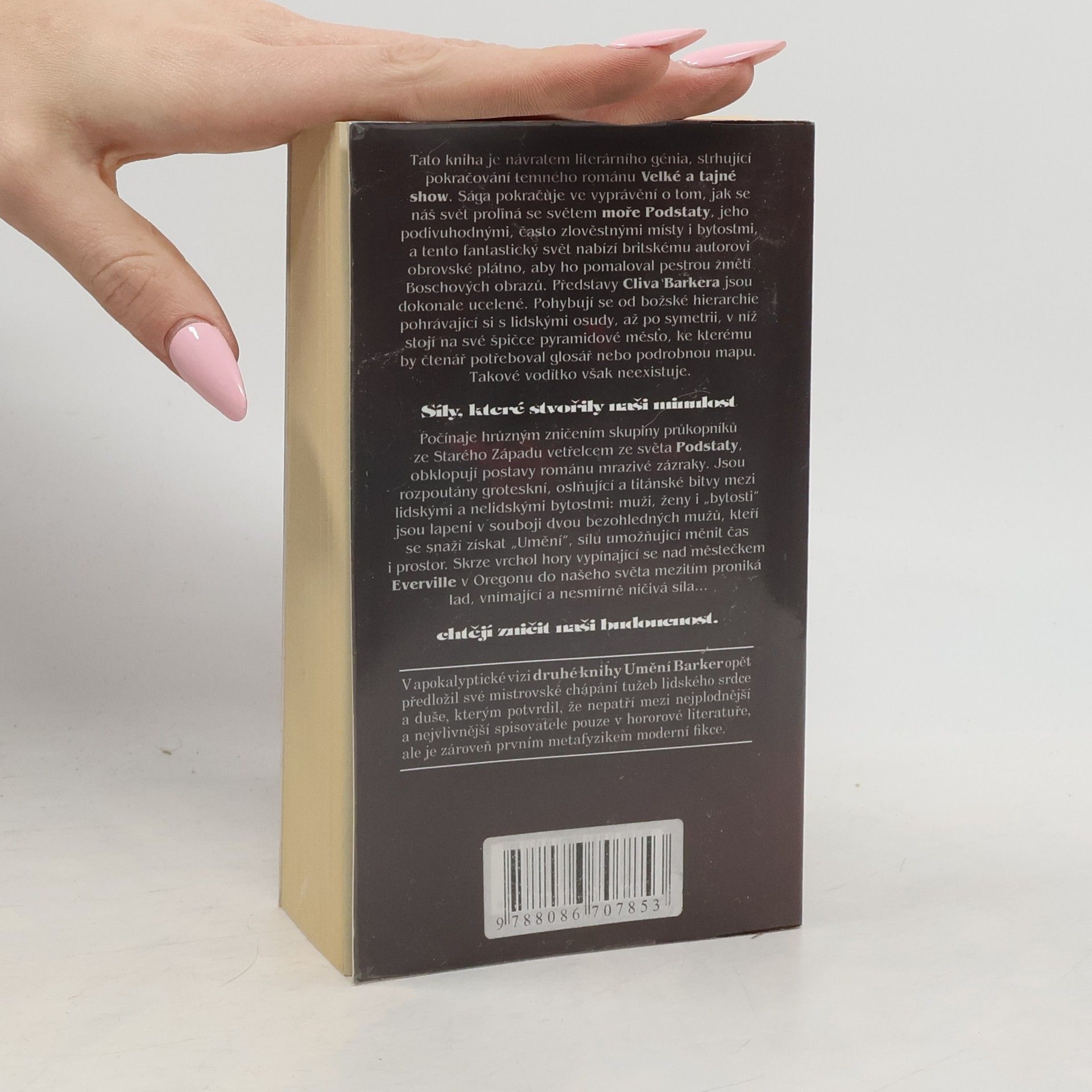 Vítejte v Everville, kde brána na pobřeží jiného světa ovlivňuje životy všech obyvatel. Phoebe Cobbová se rozhodla opustit svou minulost a hledá ztraceného milence v moři snění. Tesla Bombecková, obeznámená s hrůzami za branou, se snaží rozluštit záhadnou minulost města, aby udržela nebezpečí na uzdě. Harry D'Amour, sledující zlo po Spojených Státech, ho objevuje v slunečných ulicích Everville. Síly, které formovaly naši minulost, usilují o zničení naší budoucnosti. Toto pokračování temného románu přináší fascinující příběh o prolínání našeho světa se světem Podstaty, plným podivuhodných a zlověstných míst a bytostí. Clivova vize je komplexní, od božské hierarchie po pyramidové město, které vyžaduje podrobnou mapu, jež však neexistuje. Od hrůzného zničení skupiny průkopníků až po groteskní bitvy mezi lidskými a nelidskými bytostmi, postavy se ocitají v souboji dvou bezohledných mužů usilujících o „Umění“, moc, která mění čas a prostor. Zároveň se do našeho světa dere Iad, ničivá síla. V apokalyptické vizi autor opět prokazuje své mistrovství v chápání lidských tužeb a potvrzuje svou pozici jako klíčového autora moderní fikce.