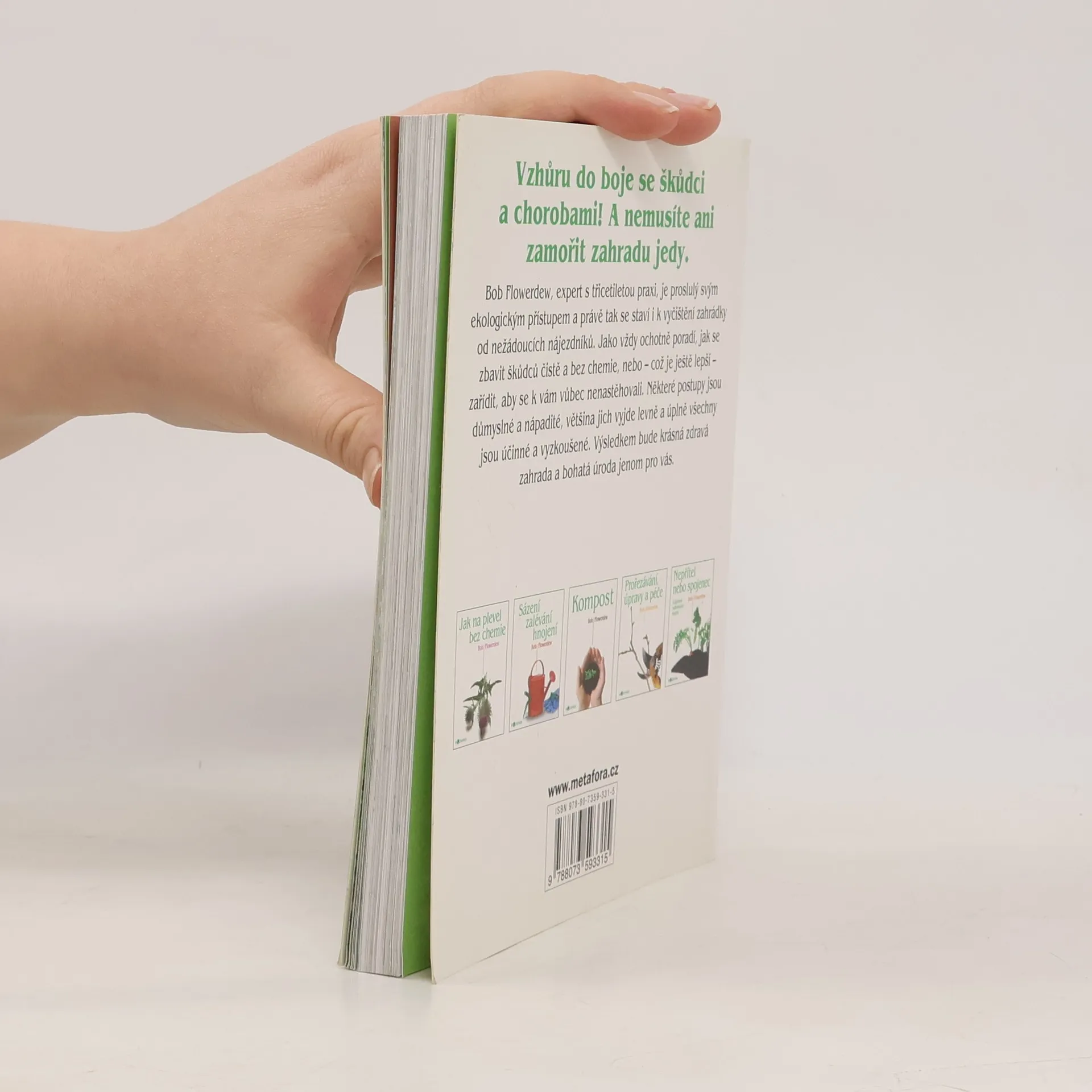 Bob Flowerdew, expert s třicetiletou praxi, je proslulý svým ekologickým přístupem a právě tak se staví i k vyčištění zahrádky od nežádoucích nájezdníků. Jako vždy ochotně poradí, jak se zbavit škůdců čistě a bez chemie, nebo - což je ještě lepší - zařídit, aby se k vám vůbec nenastěhovali. Některé postupy jsou důmyslné a nápadité, většina jich vyjde levně a úplně všechny jsou účinné a vyzkoušené. Výsledkem bude krásná zdravá zahrada a bohatá úroda jenom pro vás.