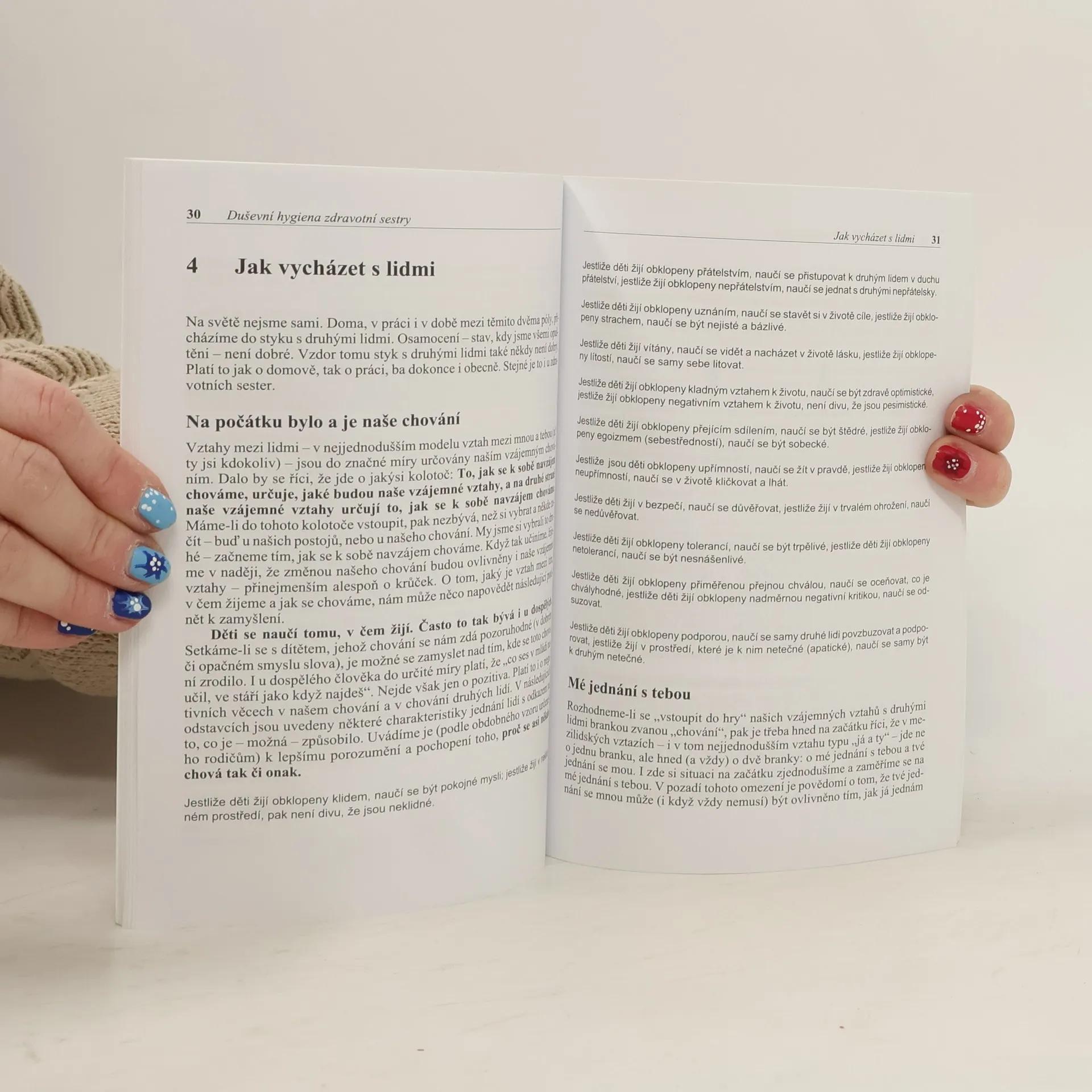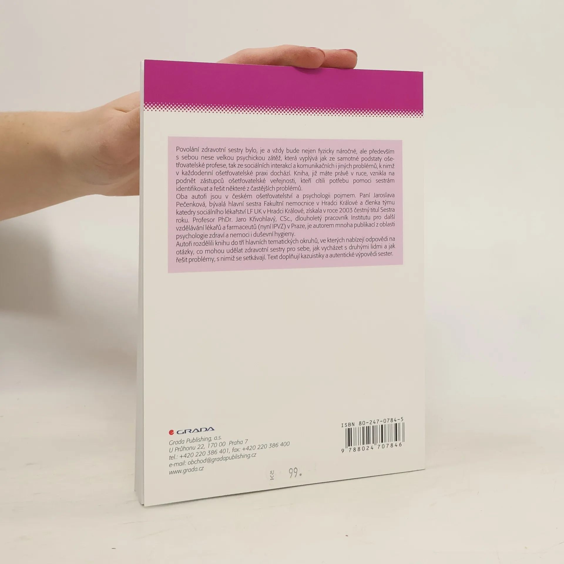 Publikace dvou známých autorů se zabývá problematikou duševní hygieny zdravotní sestry a sociálních interakcí. Nabízí možné příčiny i způsoby řešení komunikačních i jiných problémů, ke kterým v každodenní ošetřovatelské praxi dochází. Kniha je obohacena o kasuistiky a autentické výpovědi sester.