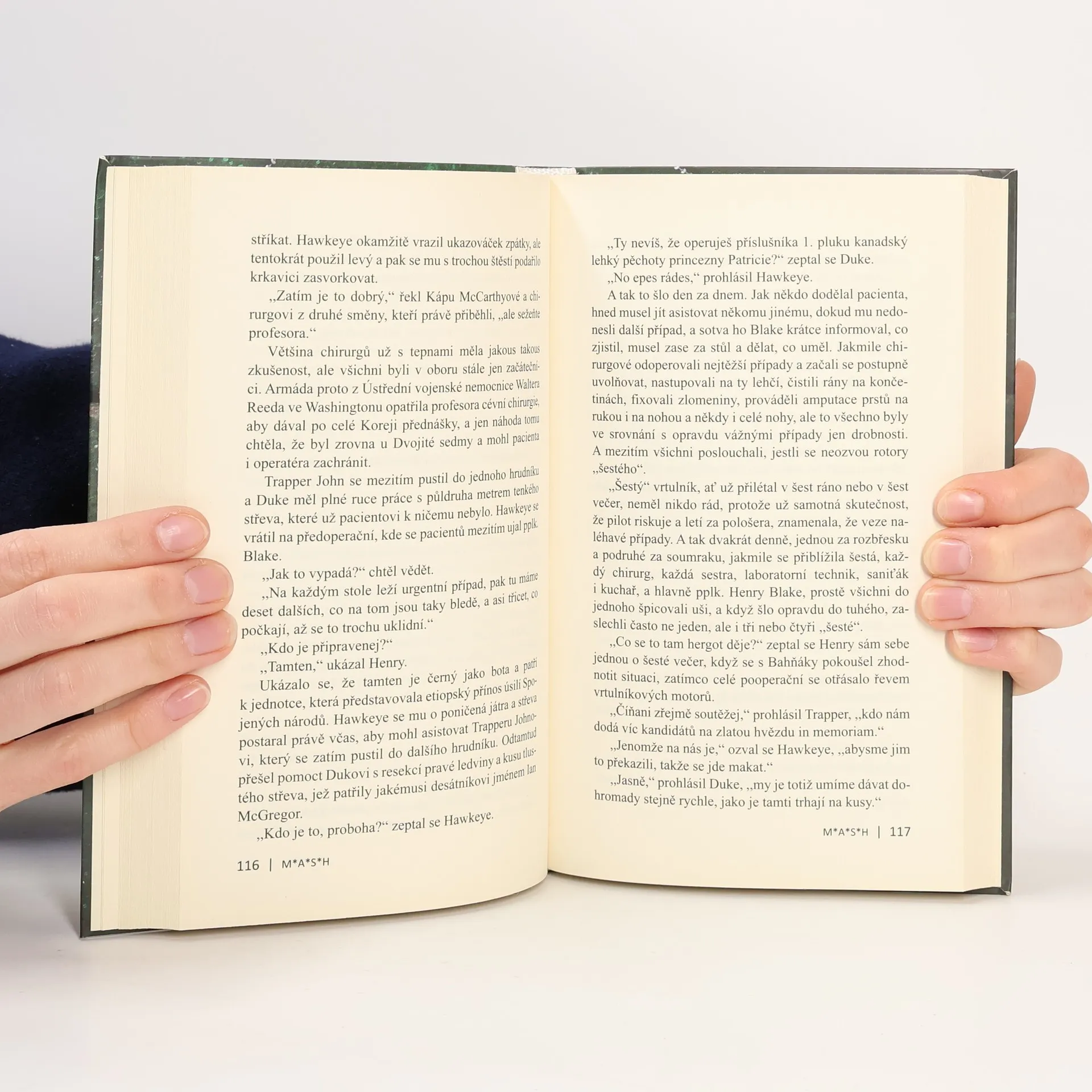 Satirický příběh tří doktorů z jedné mobilní armádní chirurgické nemocnice během korejského konfliktu. Příběhy plné černého humoru, který se stal nejsilnější zbraní v boji s depresí, stresem a válečným šílenstvím, sepsal pod pseudonymem sám jeden z chirurgů. Neúspěšně je nabízel mnoha nakladatelům, nakonec uspěl a kniha se stala předlohou k filmu i televiznímu seriálu, z kterého se zakrátko zrodil světový fenomén.