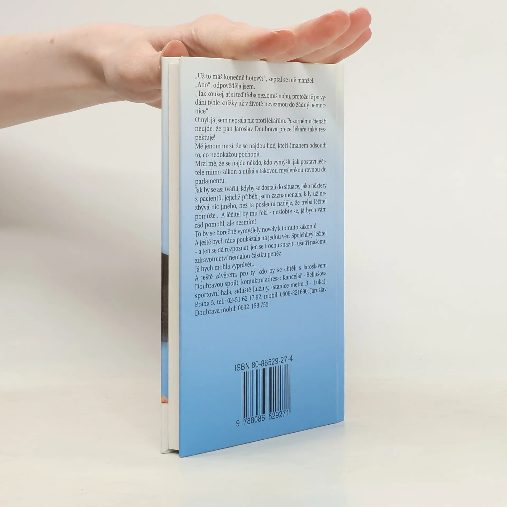 Eva Pilarová popsala životní příběh léčitele Jaroslava Doubravy. Formou rozhovorů se dozvídáme o jeho dětství stráveném u prarodičů, o jeho první lásce, se kterou si hrál na pana doktora, o tom, jak se seznámil se svojí ženou, ale především jak objevil své léčitelské schopnosti. Přibližuje čtenáři, jak funguje energie, kterou jako léčitel předává, a také odkud pramení. Upřímně mluví o jiných léčitelích a alternativních cestách, nezapomíná ani na klasickou medicínu a otevřeně líčí své zážitky a životní zkušenosti. Eva Pilarová v knize vyzpovídala i nejbližší rodinné příslušníky a také několik pacientů, které pan Doubrava úspěšně vyléčil z těžké nemoci (včetně Miloše Macourka, známého dramatika, básníka a scenáristu). Jednoznačně se postavila na stranu spolehlivých léčitelů, kteří znají svoje schopnosti i svoje hranice a mají zájem spolupracovat s lékaři. A jako bonus paní Doubravová prozrazuje recept na vynikající vepřový guláš Doubrava.