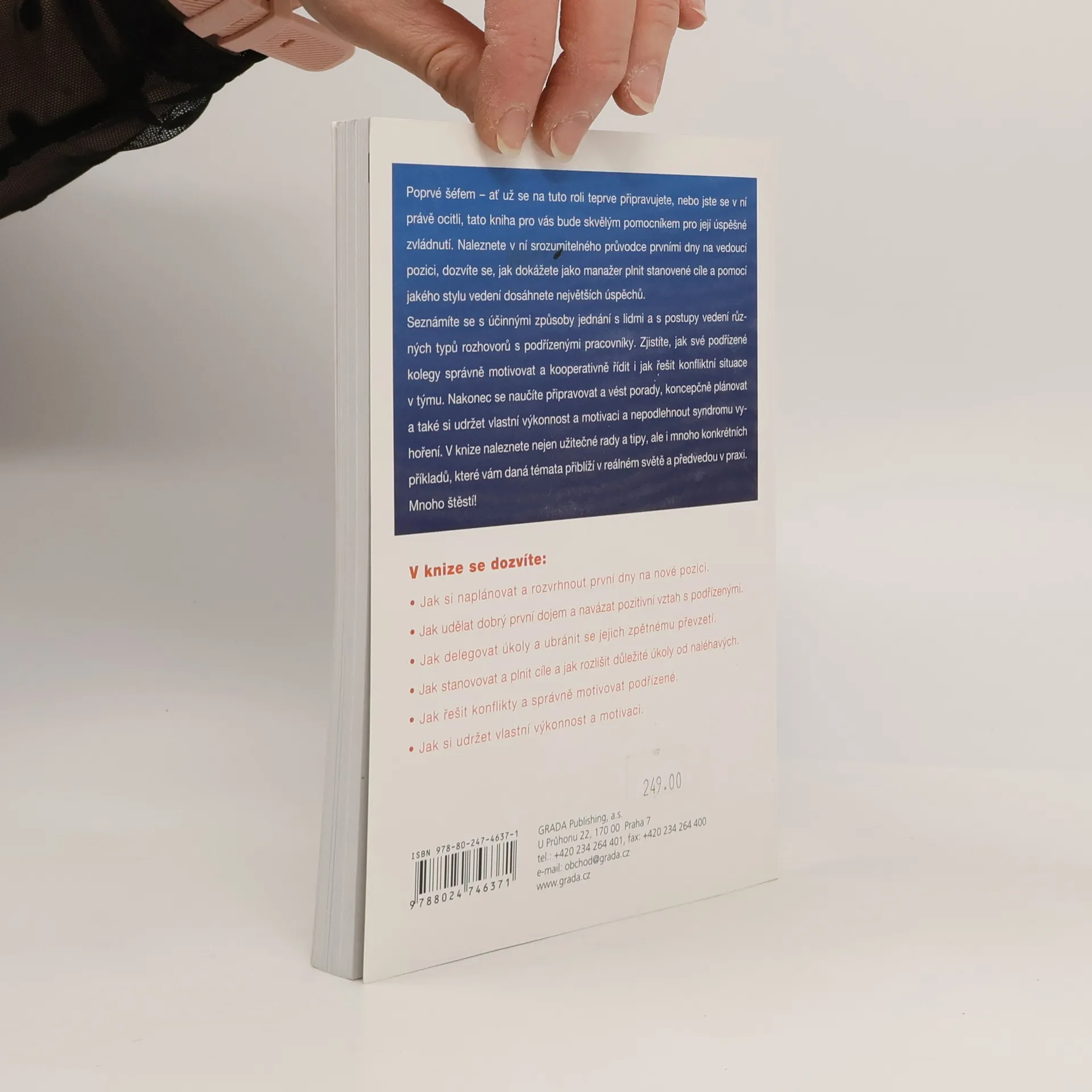 Poprvé šéfem - ať už se na tuto roli teprve připravujete, nebo jste se v ní právě ocitli, tato kniha pro vás bude skvělým pomocníkem pro její úspěšné zvládnutí. Naleznete v ní srozumitelného průvodce prvními dny na vedoucí pozici, dozvíte se, jak dokážete jako manažer plnit stanovené cíle a pomocí jakého stylu vedení dosáhnete největších úspěchů. Seznámíte se s účinnými způsoby jednání s lidmi a s postupy vedení různých typů rozhovorů s podřízenými pracovníky. Zjistíte, jak své podřízené kolegy správně motivovat a kooperativně řídit a také jak řešit konfliktní situace v týmu. Nakonec se naučíte připravovat a vést porady, koncepčně plánovat a také si udržet vlastní výkonnost a motivaci a nepodlehnout syndromu vyhoření. V knize naleznete nejen užitečné rady a tipy, ale i mnoho konkrétních příkladů, které vám daná témata přiblíží v reálném světě a předvedou v praxi. Mnoho štěstí! V knize se dozvíte: - Jak si naplánovat a rozvrhnout první dny na nové pozici. - Jak udělat dobrý první dojem a navázat pozitivní vztah s podřízenými. - Jak delegovat úkoly a ubránit se jejich zpětnému převzetí. - Jak stanovovat a plnit cíle a jak rozlišit důležité úkoly od naléhavých. - Jak řešit konflikty a správně motivovat podřízené. - Jak si udržet vlastní výkonnost a motivaci.