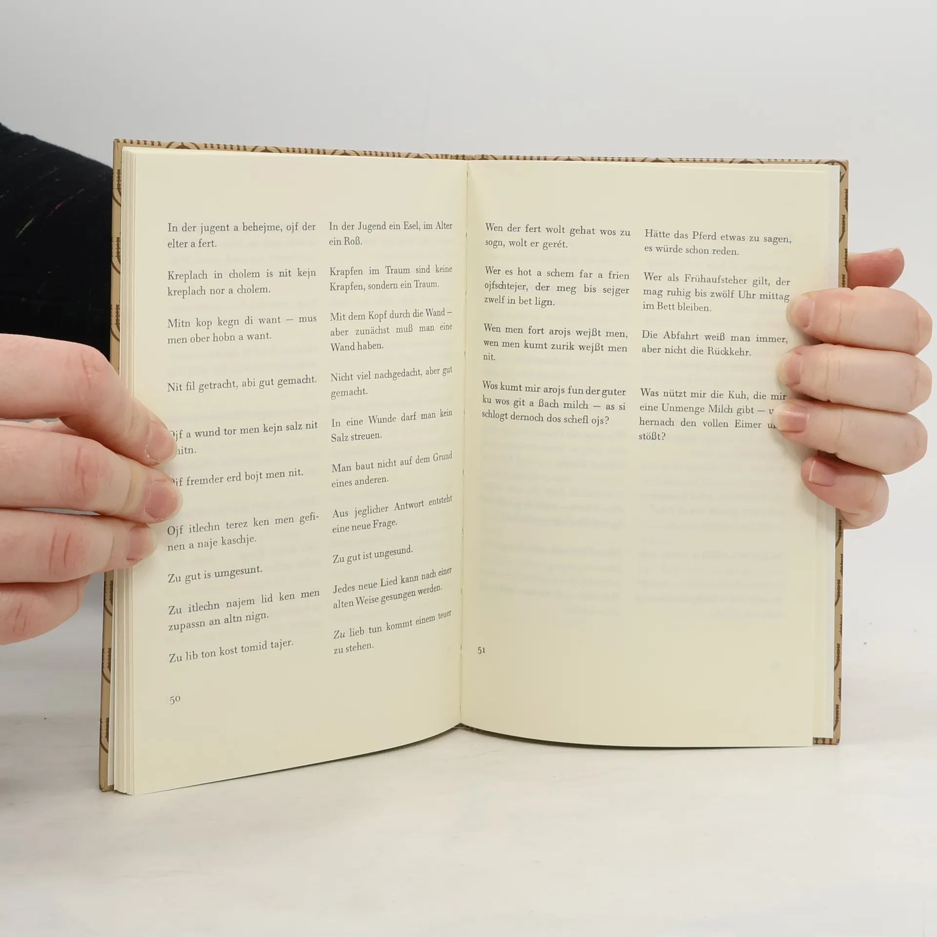 »Ein Pechvogel fällt auf den Hintern und zerschlägt sich dabei die Nase«: Jiddische Sprichwörter voller Witz und mit einem tiefen Verständnis für alles Menschliche finden sich in dieser Zusammenstellung in der übersetzung H. C. Artmanns.