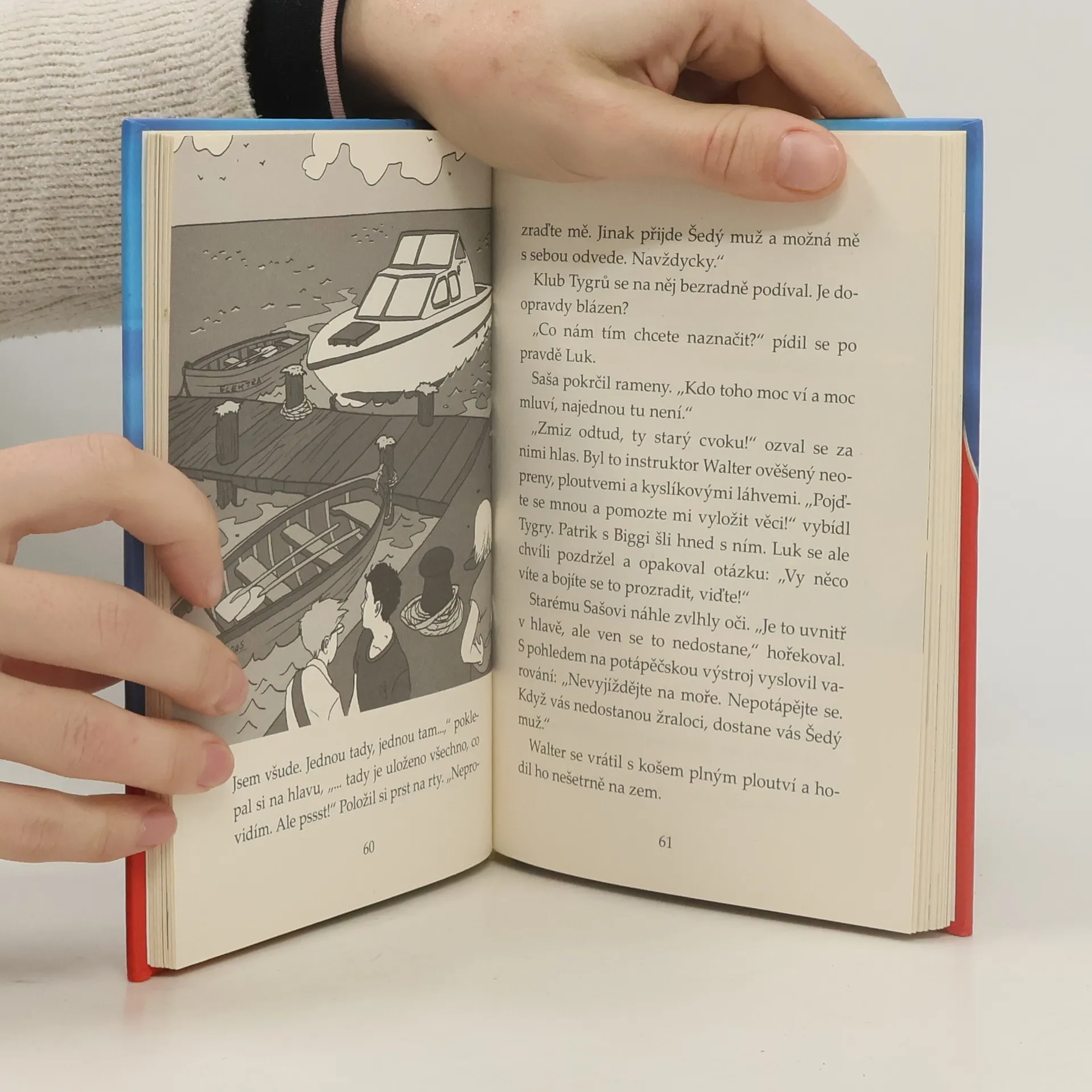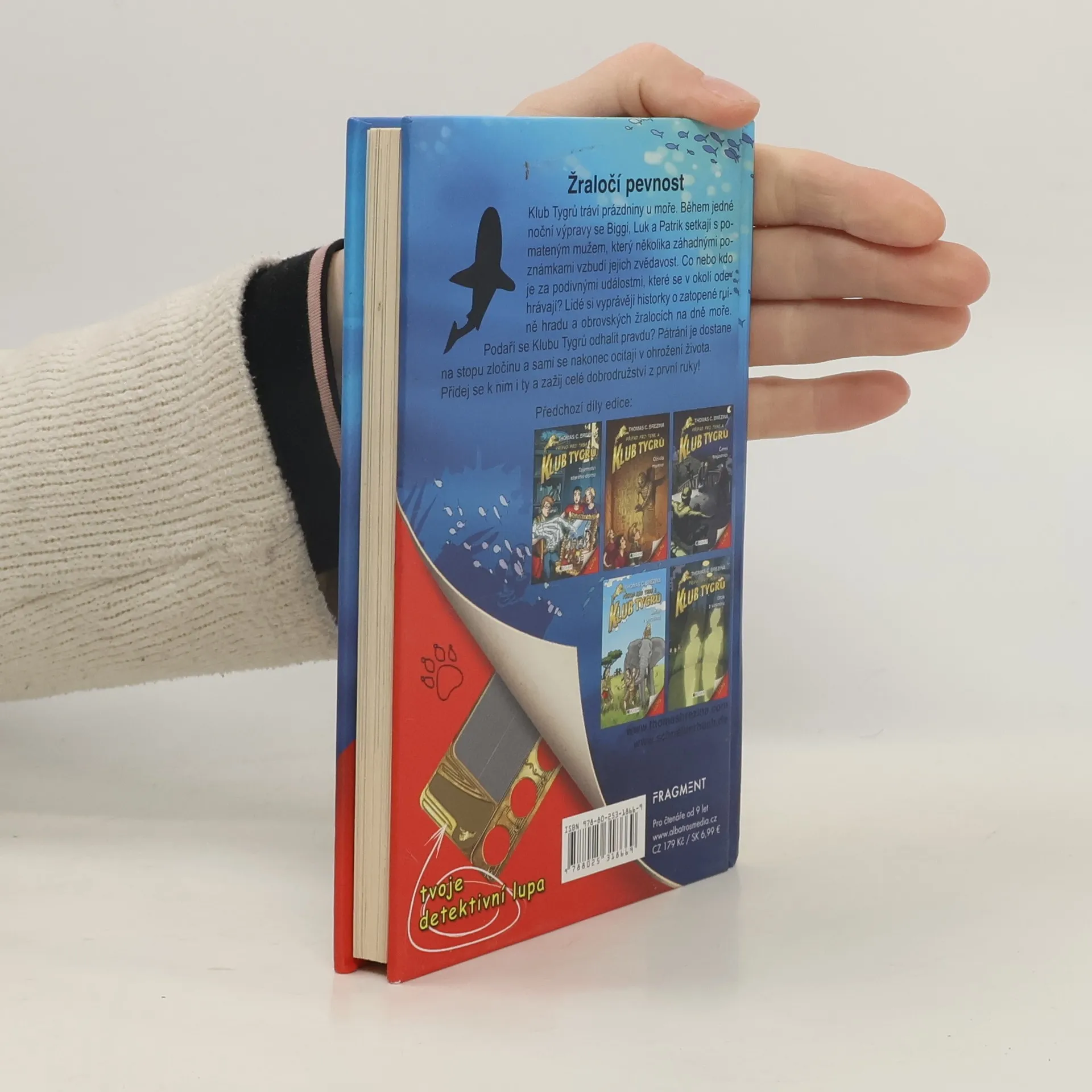 Klub Tygrů tráví prázdniny u moře. Během jedné noční výpravy se Biggi, Luk a Patrik setkají s pomateným mužem, který několika záhadnými poznámkami vzbudí jejich zvědavost. Co nebo kdo je za podivnými událostmi, které se v okolí odehrávají? Lidé si vyprávějí historky o zatopené ruině hradu a obrovských žralocích na dně moře. Podaří se Klubu Tygrů odhalit pravdu? Pátrání je dostane na stopu zločinu a sami se nakonec ocitají v ohrožení života. Přidej se k nim i ty a zažij celé dobrodružství z první ruky!