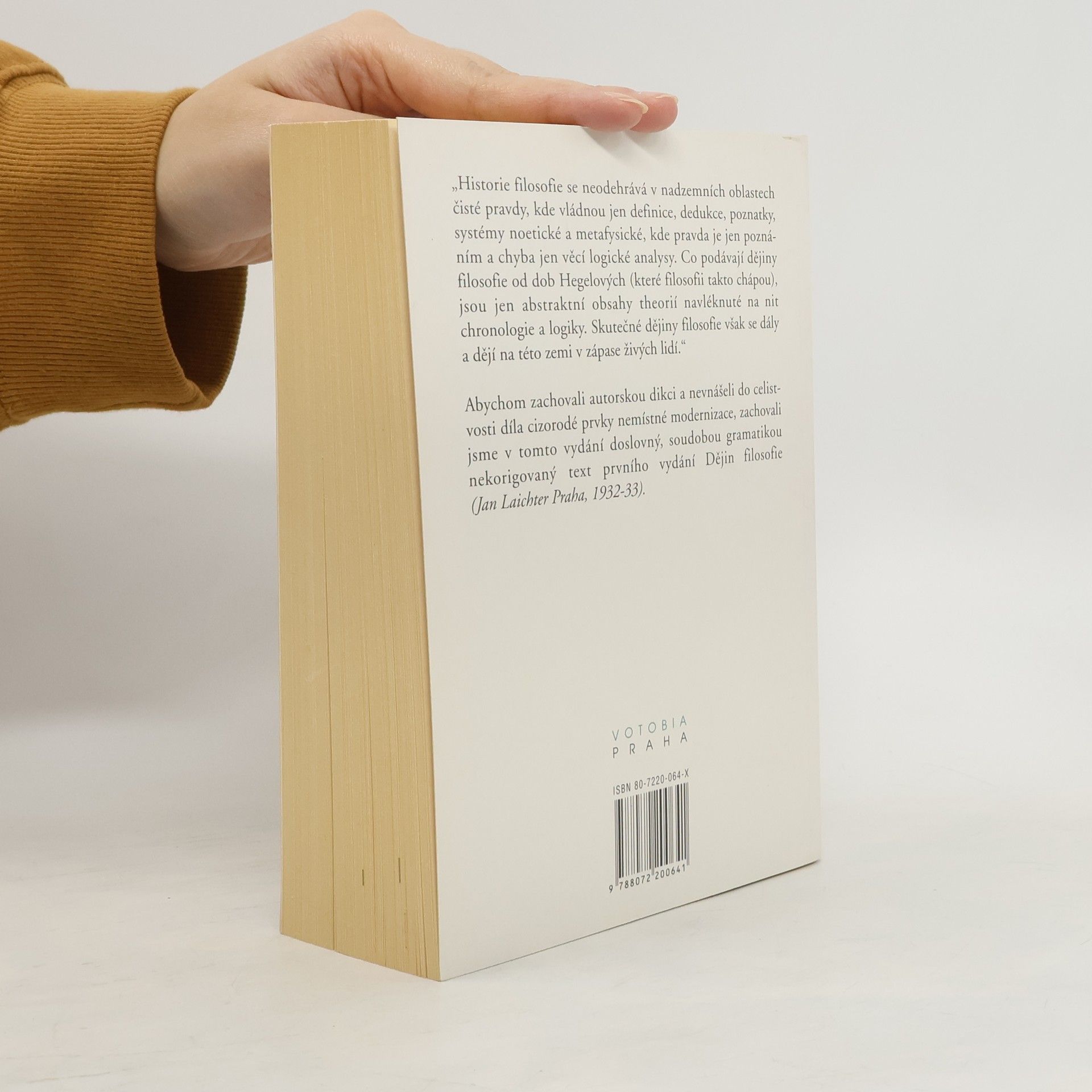 „Historie filosofie se neodehrává v nadzemních oblastech čisté pravdy, kde vládnou jen definice, dedukce, poznatky, systémy noetické a metafysické, kde pravda je jen poznáním a chyba jen věcí logické analysy. Co podávají dějiny filosofie od dob Hegelových (které filosofii takto chápou), jsou jen abstraktní obsahy theorií navléknuté na nit chronologie a logiky. Skutečné dějiny filosofie však se dály a dějí na této zemi v zápase živých lidí.“ Z těchto východisek vzešlo životní dílo významného českého filosofa, pozitivisty, současníky Masarykova, dvoudílné dějiny filosofie. Ačkoli tato práce – výsledek celoživotního bádání a úsilí autora – vyšla více než před půlstoletím, mnohé její závěry jsou platné a poučné dosud. Rádlův racionální přístup a přitom akademismem nezatěžkaný vyjadřovací přístup tvoří z této publikace vynikající pomůcku při exkursu do dějin filosofie a zároveň názorný přiklad významné dobové myšlenkové konvence, jíž pozitivismus nesporně byl. Abychom zachovali autorskou dikci a nevnášeli do celistvosti díla cizorodé prvky nemístné modernizace, zachovali jsme v tomto vydání doslovný, soudobou gramatikou nekorigovaný text prvního vydání Dějin filosofie (Jan Laichter Praha, 1932–33).