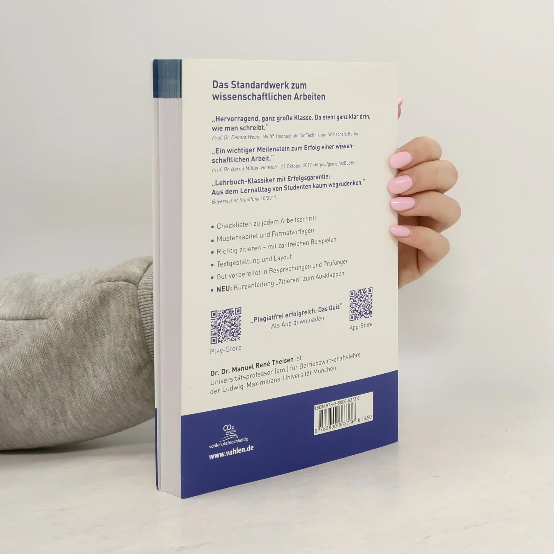 Das Standardwerk zum wissenschaftlichen Arbeiten„Hervorragend, ganz große Klasse. Da steht ganz klar drin, wie man schreibt.“Prof. Dr. Debora Weber-Wulff, Hochschule für Technik und Wirtschaft, Berlin„Ein wichtiger Meilenstein zum Erfolg einer wissenschaftlichen Arbeit.“Prof. Dr. Bernd Müller-Hedrich – 27.Oktober 2017„Lehrbuch-Klassiker mit Aus dem Lernalltag von Studenten kaum wegzudenken.“Bayerischer Rundfunk 10/2017Dr. Dr. Manuel René Theisen ist Universitätsprofessor (em.) für Betriebswirtschaftslehre der Ludwig-Maximilians-Universität München