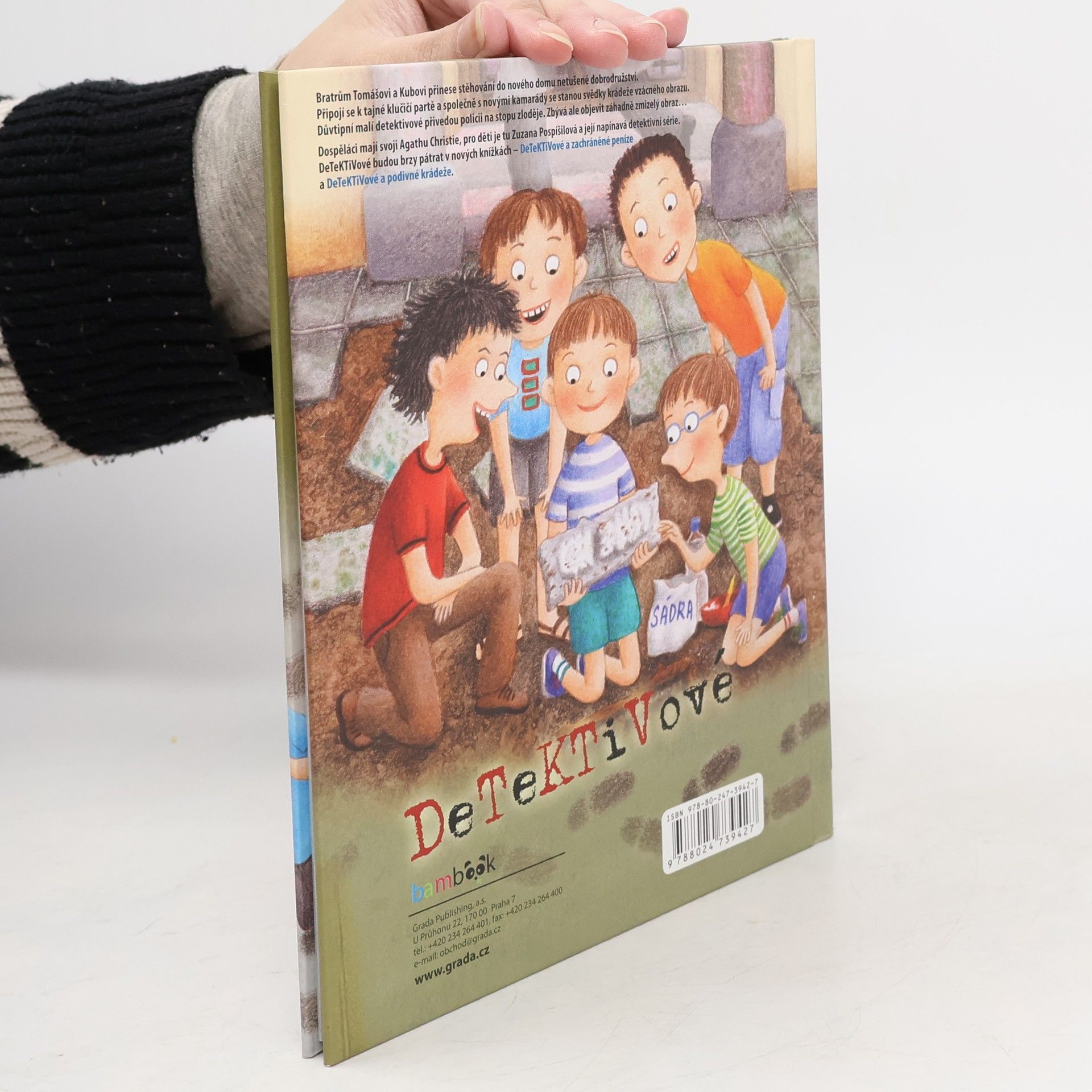 Bratrům Tomášovi a Kubovi přinese stěhování do nového domu netušené dobrodružství. Připojí se k tajné klučičí partě a společně s novými kamarády se stanou svědky krádeže vzácného obrazu. Důvtipní malí detektivové přivedou policii na stopu zloděje. Zbývá ale objevit záhadně zmizelý obraz... Dospěláci mají svoji Agathu Christie, pro děti je tu Zuzana Pospíšilová a její dětská detektivka. Malí čtenáři se mohou těšit nejen na napínavý text a krásné ilustrace Markéty Vydrové, ale také na tajný vzkaz a doprovodné detektivní otázky. DeTeKTiVové budou brzy pátrat v dalších, nových knížkách.