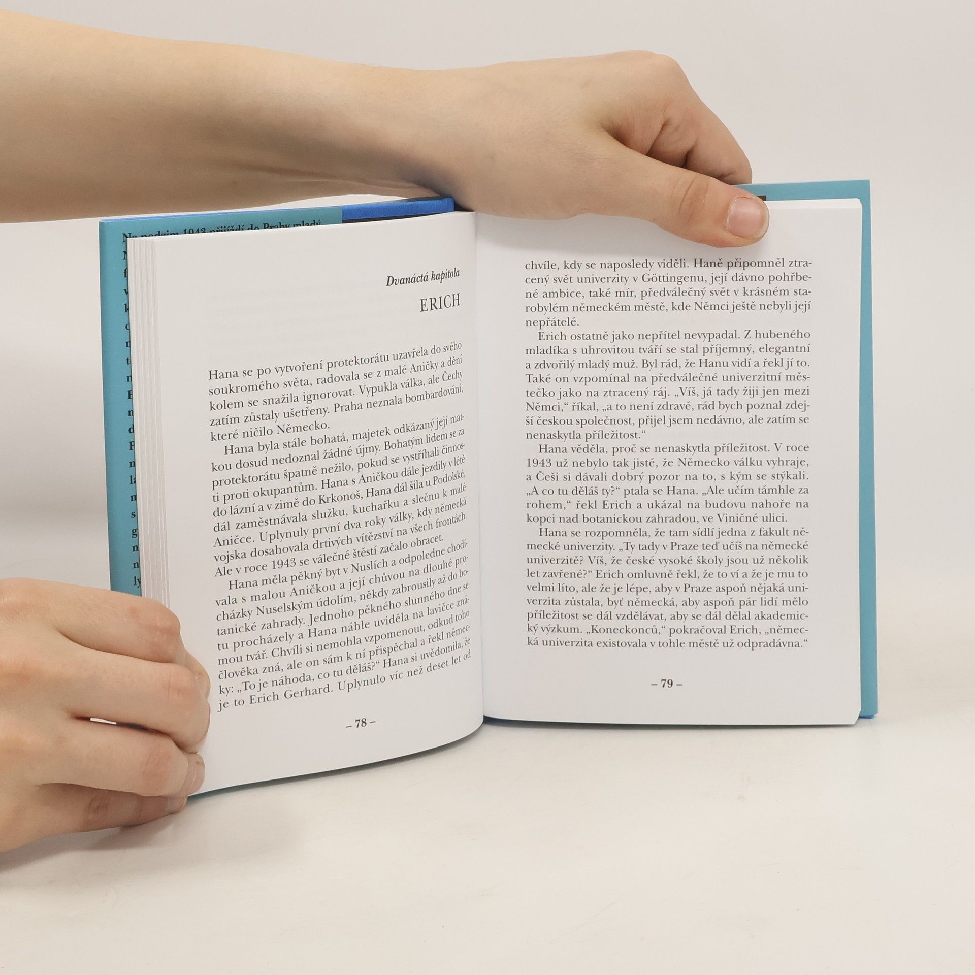 Na podzim 1943 přijíždí do Prahy mladý Němec Erich. Byl jmenován profesorem formální logiky na pražské německé univerzitě. Ve světě probíhá už třetím rokem válka. Válečné štěstí se ale začíná obracet proti Německu, které ještě donedávna šlo od vítězství k vítězství. Erich toho ví o válce hodně, až do svého zranění byl kapitánem německé ponorky. Před válkou studoval na nejlepších německých univerzitách a proslavil se řadou odborných článků. V krásné, výstavné Praze je klid, město však zato zaplatilo nesmírnou cenu, vzalo na sebe jařmo kolaborace s Hitlerovou říší. Hrdinka románu Hana, která před válkou studovala s Erichem logiku na univerzitě v Göttingenu, vyčte Erichovi, že přijal místo na německé univerzitě v Praze v době, kdy nacisté zavřeli všechny české vysoké školy. Erich tvrdí, že nezáleží na tom, kde a za jakých podmínek bádání probíhá, důležité je, že pokračuje. Román z válečné Prahy je současně také reflexí nad postavením jedince ve válečném dramatu, v době velkých historických zlomů, reflexí celého údobí německé okupace Československa, působení protektorátní vlády v Praze pod vedením prezidenta Háchy, stejně jako exilové vlády dr. Edvarda Beneše v Londýně. Také sedmnáctá kniha této autorky nepochybně vzbudí zasloužený zájem čtenářů.
