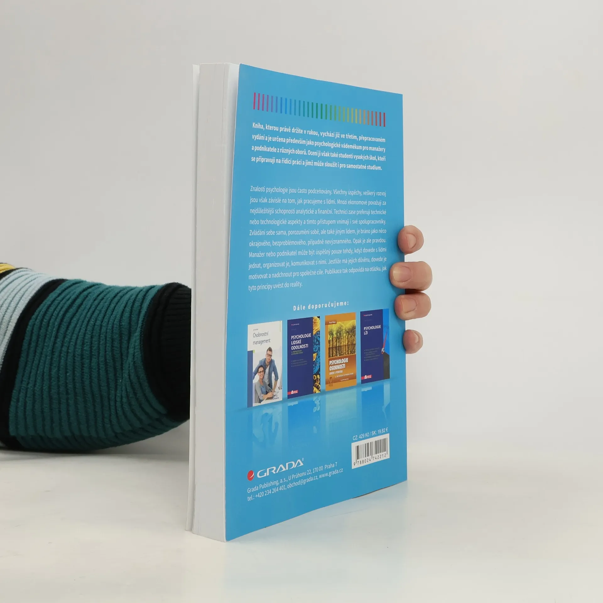 Kniha vychází již ve třetím, upraveném vydání a je určena především jako psychologické vádemékum pro manažery a podnikatele z různých oborů. Ocení ji však také studenti vysokých škol, kteří se připravují na řídicí práci a jimž může sloužit i pro samostatné studium. Znalosti psychologie jsou často podceňovány. Všechny úspěchy, veškerý rozvoj jsou však závislé na tom, jak pracujeme s lidmi. Mnozí ekonomové považují za nejdůležitější schopnosti analytické a finanční. Technici zase preferují technické nebo technologické aspekty a tímto přístupem vnímají i své spolupracovníky. Zvládání sebe sama, porozumění sobě, ale také jiným lidem, je bráno jako něco okrajového, bezproblémového, případně nevýznamného. Opak je ale pravdou. Manažer nebo podnikatel může být úspěšný pouze tehdy, když dovede s lidmi jednat, organizovat je, komunikovat s nimi. Jestliže má jejich důvěru, dovede je motivovat a nadchnout pro společné cíle. Publikace tak odpovídá na otázku, jak tyto principy uvést do reality.