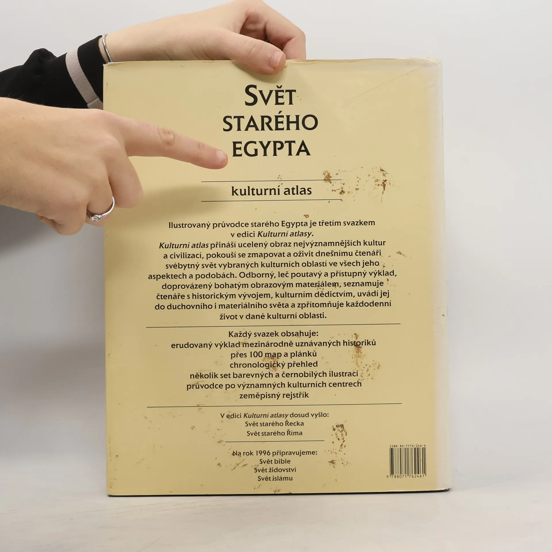 Tato kniha pojednává zcela novým způsobem o starém tématu - starověkém Egyptě. Dosud nikdy nebylo toto téma představeno formou kulturního atlasu, jenž přináší nejen mnoho historických a topografických map, ale také erudovaný text, ve kterém se dvěma významným egyptologům podařilo obsáhnout kulturu - chápanou v širokém smyslu - této staré civilizace.